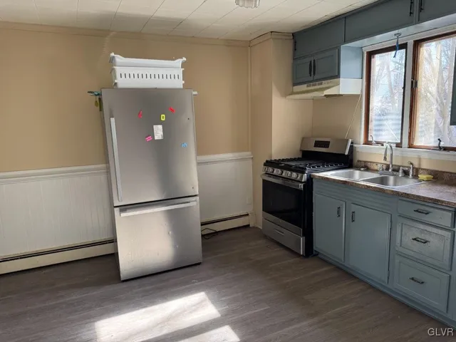 This home features 3-4 bedrooms and 1 bath. Fresh paint throughout the home. You have a spacious kitchen with new stove, as well as a dining room: natural gas heat and a gas fireplace in the living room help keep your heating costs low. There is off-street parking and a cute backyard for entertaining!