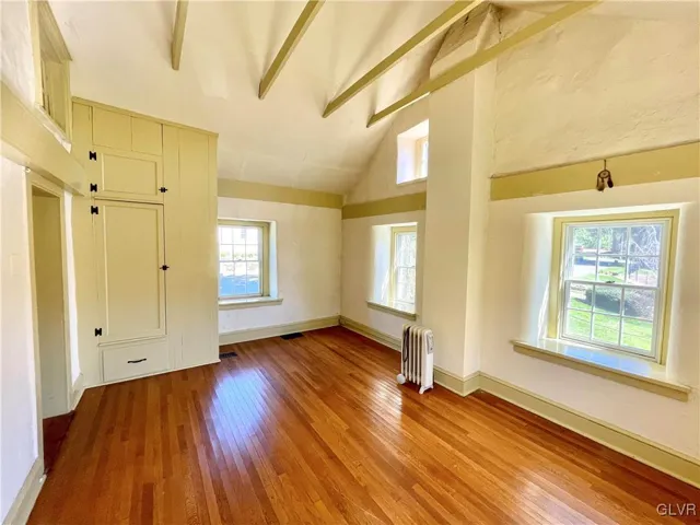 living. The classic beams, deep window sills, and stone structure