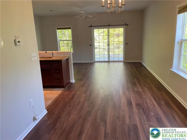 This is a beautiful CONDOMINIUM community with tree-lined lots and GREAT VIEWS. A 2 story entry way, 9 FOOT CEILINGS and enormous 2nd floor landing . It also features 3 bedrooms, 2.5 baths with 2nd floor laundry. Attached garage and a DECK off of the living room that faces the woods. FULL BASEMENT with a walkout. Master bedroom has a walk-in closet. GRANITE counter-tops completes this lovely home! Near Route 78,412, Lehigh university nearby, All shopping closeby