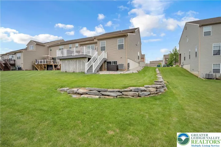 This immaculate end unit town home offers 2113 sqft of living space with 3 bedrooms 2.5 baths and that hard to find 1st floor master bedroom suite. The open concept first floor offers a large foyer, the welcoming space of a 2-story dining room makes an impressive statement, It opens onto the large center island kitchen and breakfast area with stainless steel appliances and granite counter tops, which Flows seamlessly from the breakfast area is the vaulted ceiling family room with a gas fire place, a place for all to enjoy. The secluded master retreat features numerous closets with oversized shower and privacy toilet, attractive L-shaped stairway, w/ convenient landing, leads to the upper level, where the loft makes an ideal office are sitting area, Two additional bedrooms and hall bath make this level perfect for guests and extended family. The basement offers an egress window, and abundance of natural light and could easily be finished into additional living space. There is a nice size two car garage with a dedicated 220 line, masonry front with metal roof, maintenance free exterior, nice size trex deck with vinyl railing.