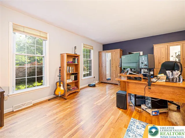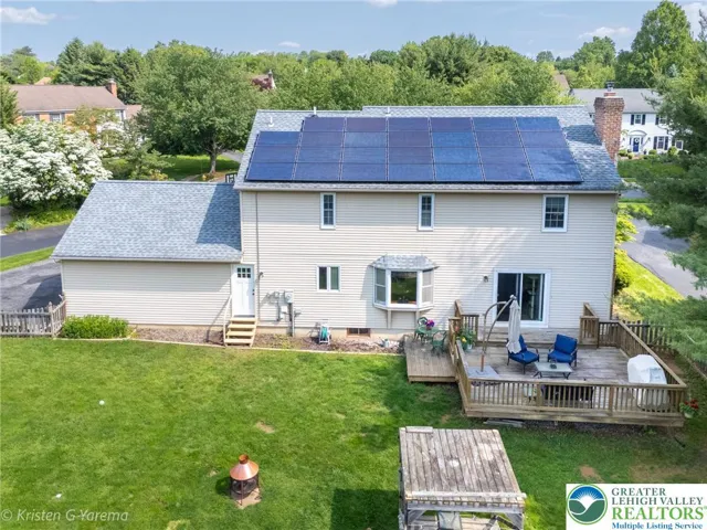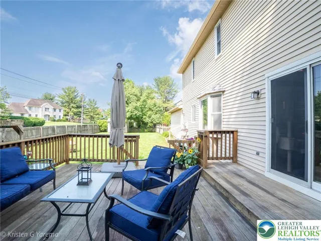 Don't miss your chance to own this beautiful 4-bedroom, 2.5-bath colonial home situated in a lovely cul de sac within the Cross Timbers development. Step inside to the spacious, freshly painted foyer with hardwood floors and sliding doors leading to a private home office. To the right of the entryway, you'll find a dining room perfect for more formal entertaining. Continue through to the open-concept kitchen, eating and living area anchored by a cozy fireplace and open shelving. A custom coffee nook adds convenience to your daily routine. Just grab a cup and head outside to enjoy mornings on your deck and your private fenced in yard. Laundry area and half bath off the kitchen complete the downstairs. Upstairs, the spacious primary suite includes a full ensuite bath with a jacuzzi tub, shower and walk in closet. Three additional bedrooms and full bathroom provide plenty of flexibility for your individual needs. The finished basement adds two separate ample living areas, along with a dedicated storage space to help keep everything organized. Located in Lower Macungie Township, just five minutes from I-78, Target, Whole Foods, Costco, dining options and more this home is unmatched convenience for daily living. Schedule your showing today and make this house your home!