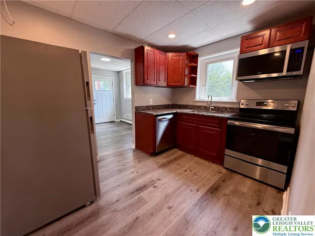 Welcome to 111 S Main St in downtown Coopersburg Borough. Updated 1 bed 1 bath apartment with private entrance. Features a great layout with spacious room sizes. The property features 2 zone mini split heat pumps and a recently updated bathroom and kitchen. The kitchen features SS appliances including an electric stove, OTR Microwave, cherry cabinetry and granite counters. There are LVP floors throughout all floors in the apartment. The recently updated bathroom boasts a tile surround tub/shower. Tenants pay water, electric, and provide proof of renters insurance. Pets considered too with additional fees. Dogs up to 40lbs considered. Easy access to Route 309 and DeSales University. Amazing location to walk to the farmers market. Tenants in this building share a parking lot in the rear and this unit comes with 1 parking spot off street. Come check it out today!