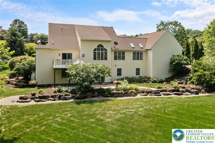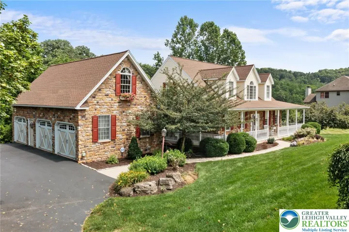 Welcome to this beautifully maintained custom home—proudly named “Home of the Year” in 2001—perfectly perched overlooking the Jordan Creek in Parkland School District. Enjoy peaceful outdoor living on your expansive wraparound porch. Love to fish? The PA Fish Commission stocks trout yearly in the backyard creek. Inside, you’ll find an award winning kitchen with abundant cabinetry, double ovens, a spacious island with seating, and a sunlit breakfast area that opens to a stunning vaulted family room. Enjoy the striking stone fireplace and grand arched window framing lush greenery and serene water views. A cozy sunroom adds even more space to unwind and soak in the beauty around you. The 1st floor primary suite offers direct access to a private deck and features an elegant en suite bath with double vanities, a soaking tub, and a walk-in shower. Upstairs features two spacious bedrooms with dormered ceilings, generous closets & a full bath. A large laundry room keeps everything tidy. The huge basement includes workshop space, storage, and rec areas w/ walkout access—ready for future finishing. There's even a floored walk-up attic above the 3-car garage for extra storage or creative use. Enjoy manicured Plantique landscaping in a quiet, established neighborhood. Don’t miss your chance to own this rare blend of comfort, charm, and waterfront retreat—where home truly feels like vacation. *BUY WITH CONFIDENCE—PRE-LISTING HOME INSPECTION AVAILABLE*3D MATTERPORT W/ FLOOR PLAN AVAILABLE*