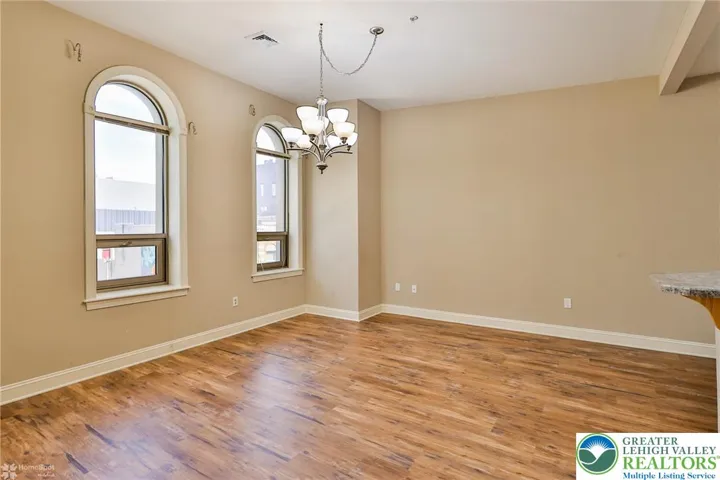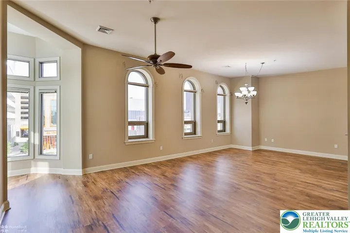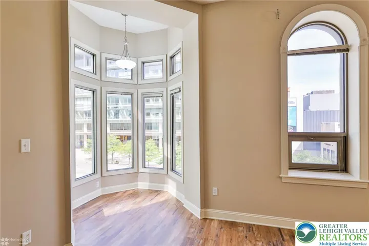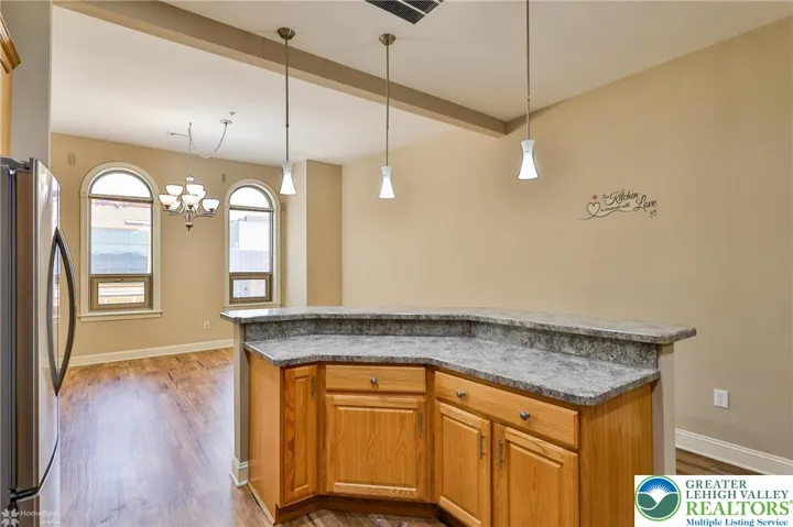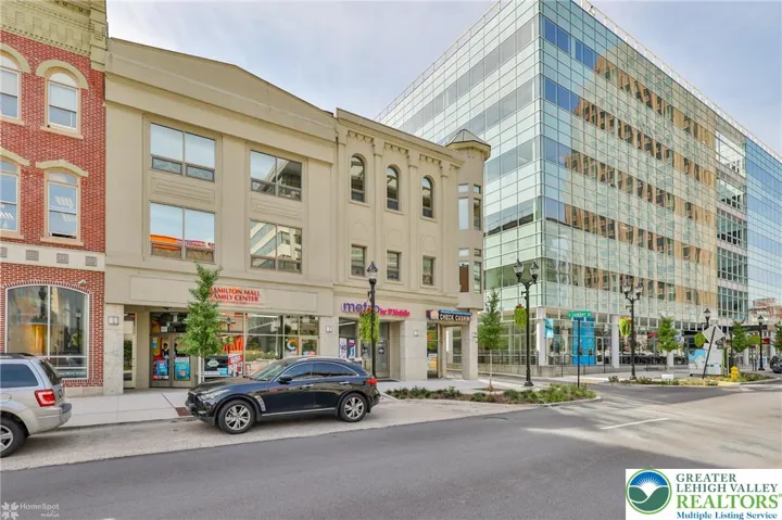 Experience upscale urban living in this spacious 2-bedroom, 2-bath apartment, ideally located across from the DaVinci Center and steps from the PPL Center. Nestled in the heart of the Business District, this luxury residence blends modern design with everyday convenience. The smart layout places one bedroom and full bath at the front, while the primary suite is tucked away at the opposite end for optimal privacy, ideal for roommates or guests. Vinyl plank flooring throughout ensures easy cleaning. The kitchen features oak cabinetry, a tiered breakfast bar with seating, and stainless steel appliances: dishwasher, range, microwave, and refrigerator. The expansive living area is filled with natural light from oversized windows, enhanced by custom blinds and soaring ceilings for an airy, sophisticated feel. Retreat to the primary suite with a walk-through closet and bath featuring a stand-alone shower and separate soaking tub. Enjoy secure building entry, stylish common areas, a glass elevator, complimentary shared laundry, two dedicated parking spaces, and gas heat with central air. Tenant pays electric and internet; heat is included.