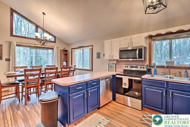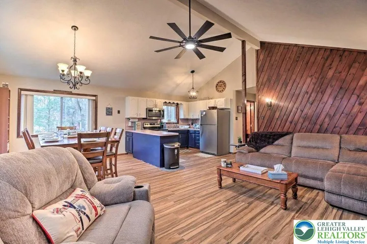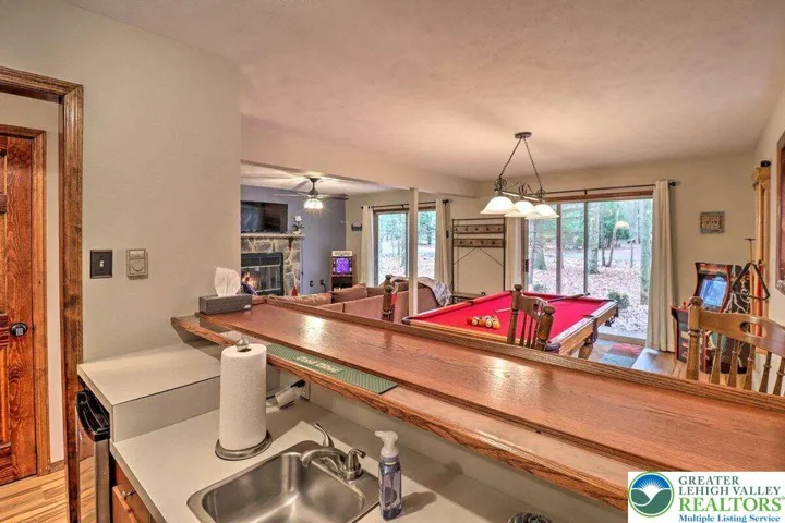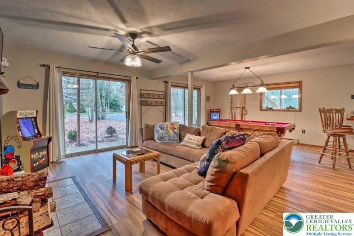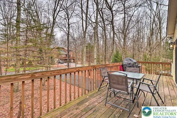 2-bath home in the sought-after Towamensing Trails community has it all. Inside, you'll find two stunning stone wood-burning fireplaces, one on main level and other located on lower level. A cozy family room with wet bar, a laundry room with sink, and new flooring throughout. The home is fully furnished and move-in ready—just bring your bags! Enjoy peaceful outdoor living on the spacious deck overlooking a private wooded lot, perfect for relaxing, entertaining, or soaking in nature. Located just minutes from Big Boulder Ski Resort and the historic Jim Thorpe area, you'll have year-round access to skiing, hiking, biking, dining, shopping, and more. Plus, as part of amenity-rich Towamensing Trails, you'll enjoy a private lake, beach, pool, clubhouse, playground, and other recreational facilities. Whether you're seeking a mountain escape or an income-producing rental, this home checks all the boxes.