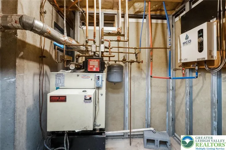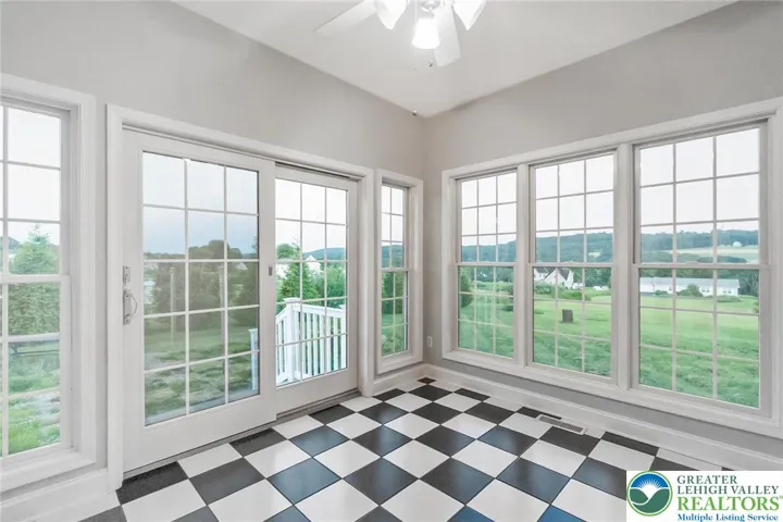 Nestled in a quiet neighborhood in the heart of the Pocono Mountains, this spacious 4 BR home sits on a picturesque 1-acre corner lot and offers breathtaking mountain views—perfect for relaxing, entertaining, and enjoying the outdoors. Recent upgrades include a new radon mitigation system, boiler expansion tank, A/C coil, basement entry door, updated water system, and a new septic alarm and pump. The 1st floor features a generously sized primary BR with a private en-suite bath, a sun-filled sunroom, a dedicated home office, and a spacious eat-in kitchen ideal for gatherings. The impressive great room showcases a cozy FP and soaring 18-foot ceilings, creating an inviting space to unwind. A formal LR, elegant DR, and powder room complete the main level, offering an excellent layout for both everyday living and entertaining. A mudroom with shower/bath is perfect for outdoor cleanup or pet care. Upstairs, you’ll find 3 additional BRs, a full bath, and a walk-in attic with expansion potential, providing abundant storage or future living space. The partially finished basement adds versatility with a large family room, bar area, or recreation space, along with an unfinished area ready for storage or future customization. Located near Route 209 and the PA Turnpike, this home offers easy access for commuting, shopping, and weekend getaways. Just minutes from Jim Thorpe and Beltzville State Park, this property delivers a rare combination of comfort, character, and natural beauty.