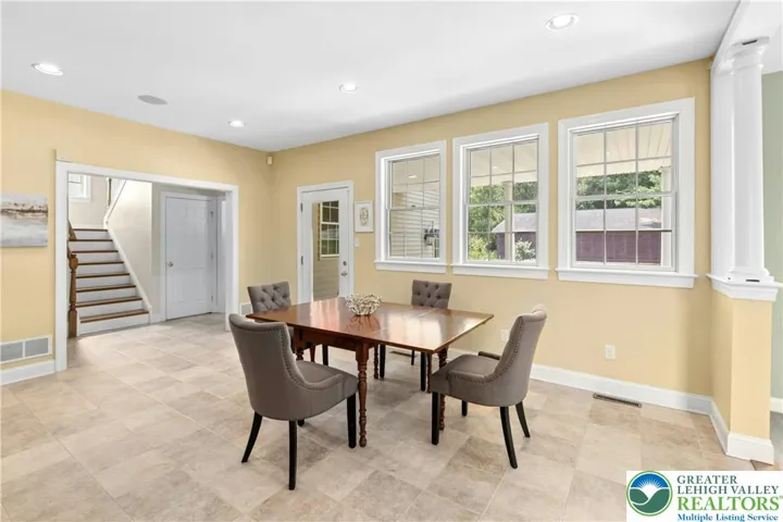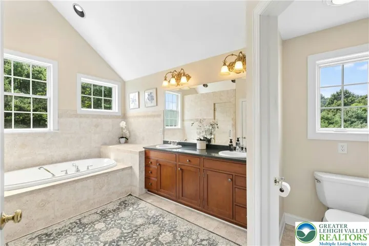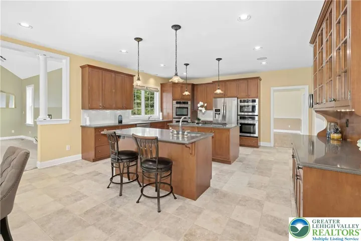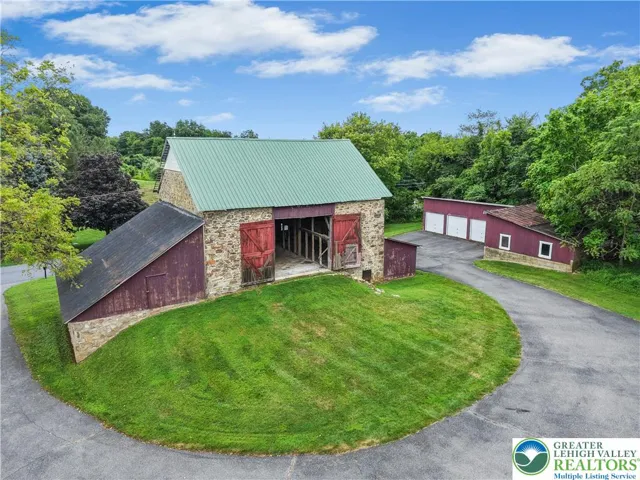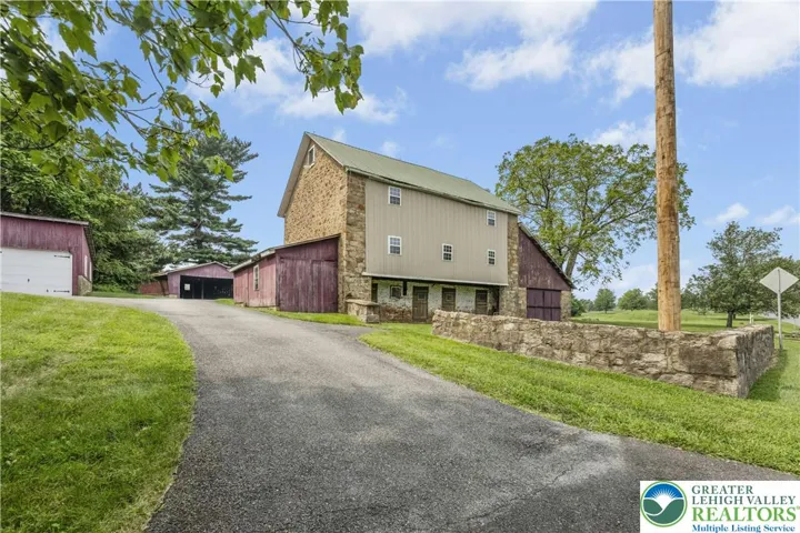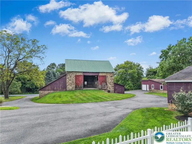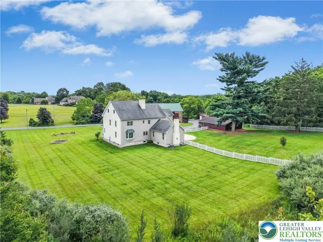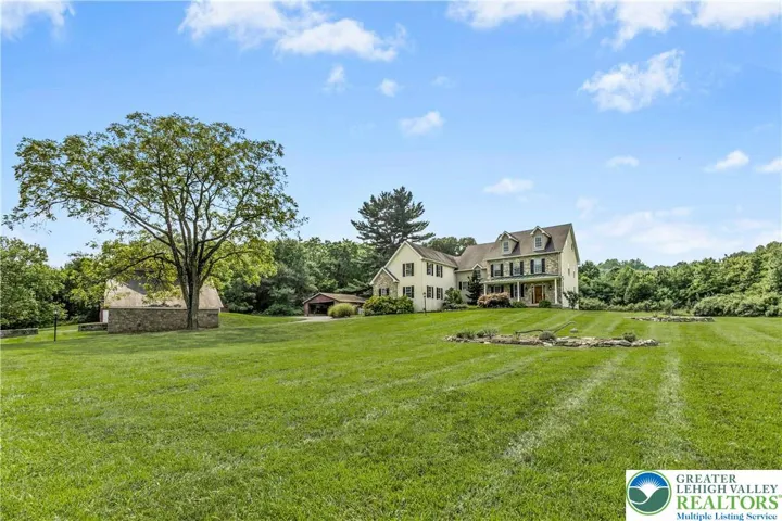 An exceptional blend of modern day amenities & a bygone era, Sunrise Knoll is a reimagined farmhouse nestled on 6.27 acres in a convenient Saucon Valley location. A custom built home with traditional farm outbuildings, including an Historic Pennsylvania bank barn, comprise the serene setting. Gracious & open, the living areas are filled with natural light, high ceilings, front & back stairs, & picturesque views of the quiet surroundings. At the heart of the home is a stunning gourmet kitchen with cherry cabinetry, 2 islands, stainless appliances, & breakfast area. The vaulted great room boasts a soaring stone fireplace & plentiful windows overlooking the picturesque land. Expansive dining & living rooms shine with gleaming wood floors, perfect for formal and casual get-togethers. Luxuriously outfitted with dual walk in closets, a jetted tub, & resort quality shower, the vaulted primary suite is a haven at day’s end. 3 additional bedrooms, one a bedroom suite, a hall bath, and a 2nd laundry room complete the 2nd floor. Perfect for teens & guests, a 3rd level bedroom suite has a vaulted ceiling, full bath, & bird’s eye view of majestic sunrises. Hobbyists & gardeners will appreciate the expansive grounds with an original corn crib & 5-bay garage. The distinctly rural feel is refreshing & peaceful, yet everyday essentials are close at hand. The perfect place to relax, bring your horse, or simply take photos of sunsets or holiday magic! 9/24 $1,225,000 APPRAISAL available.