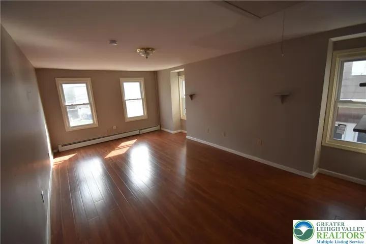 Attractive brick twin in the heart of West Easton and in the Wilson Area School District. Enter through the covered front porch into a warm and inviting living room with hardwood floors that adjoins the dining room. This open floor plan allows ample space for arranging your furniture. The kitchen is in great condition with a door to the fenced backyard, rear patio and large utility shed with plenty of storage space. Walk up the stairs to the second floor with the spacious primary bedroom that contains generous closet space and natural light. A second bedroom is the ideal space for a guest room, children's room, nursery, or home office. A full bathroom rounds out the second floor.