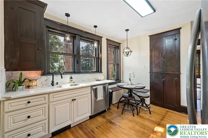 Unparalleled 1900s craftsmanship meets modern updates in this beautifully remodeled Northwestern Lehigh home. Thoughtfully redesigned with care for the community, it preserves the breathtaking character of the original structure while offering today’s comforts. From the moment you step onto the new, expansive tongue-and-groove front porch—perfect for sipping morning coffee or enjoying crisp Pennsylvania fall nights—you’ll be charmed by the details: over 100-year-old gleaming Red Pine floors, stunning 9-inch baseboards, rich stained woodwork, original doors with period hinges, and skeleton key locks. The newly redesigned kitchen blends modern, brand-new stainless steel appliances with a touch of vintage charm. Additional updates include a newer roof, new multi-zoned heating, and fully remodeled baths—1 full and 2 half (no more waiting!). This 4-bedroom home boasts 3 massive walk-in closets, a stunning family room with a wood-burning fireplace, and an enclosed mudroom leading to a new concrete patio—ideal for family BBQs. Need more space? The basement level has all-new windows and is ready for finishing, and a bonus workspace under the front porch awaits your creativity. The owners have retained the vintage carport for those who may wish to restore, repurpose, or rebuild to add equity. An oversized shed is also on site, although it is in need of TLC. (Owners are licensed PA Realtors.)