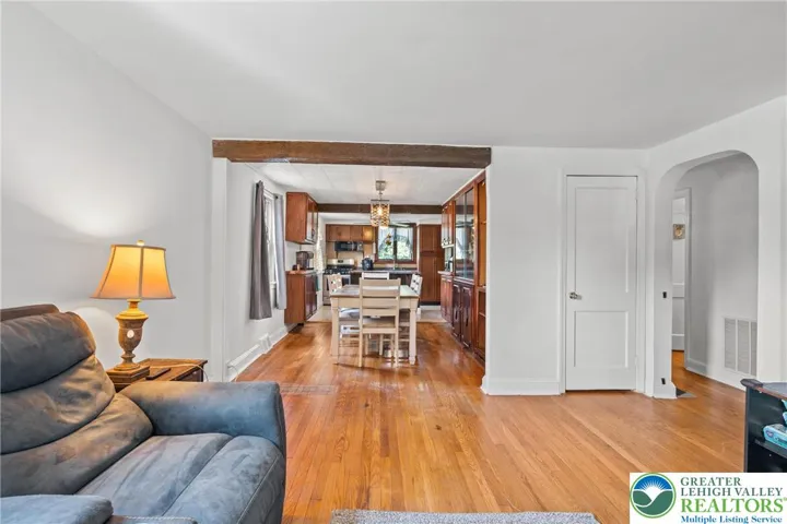 Charming brick Cape in the heart of Abington with thoughtful updates and great curb appeal. The main level features a cozy living room, formal dining room, updated eat-in kitchen with newer gas stove and dishwasher, three bedrooms, and a renovated full bath. The finished second floor offers a flexible 4th bedroom, office, or bonus space. Full basement with outside exit offers storage or finishing potential. The long driveway fits 5+ cars and leads to an attached 1-car garage. Recent upgrades include new HVAC, conversion from oil to gas, new appliances, fenced backyard, and fresh interior paint. Walkable to train, bus, shopping, restaurants, and schools. Move-in ready! Make an appointment today!