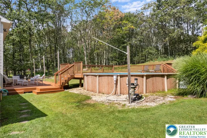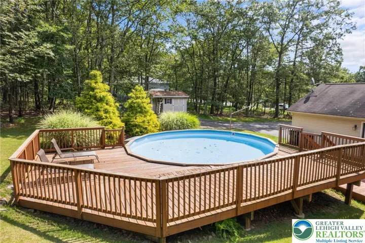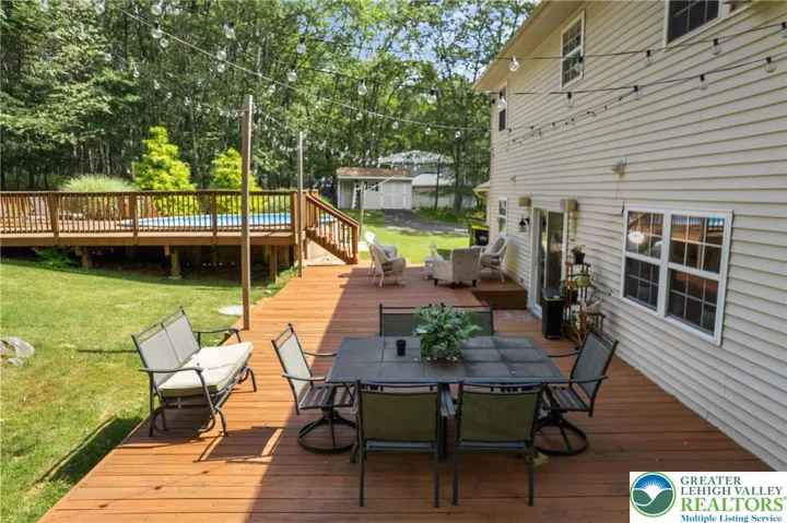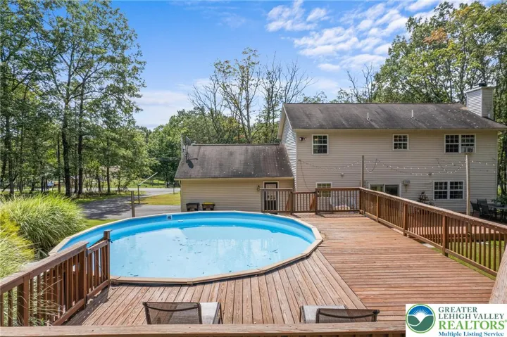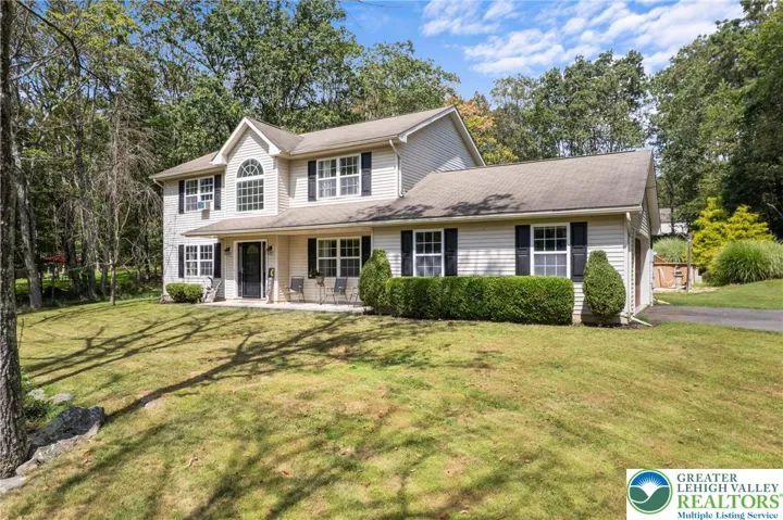 **OPEN HOUSE CANCELED - OFFER ACCEPTED**Welcome to this charming 3 Bedroom, 2 Bathroom, appx. 1,800 sq ft Colonial in the highly sought-after Sierra View community. Step into the sunlit foyer with soaring cathedral ceilings and lined with bright ceramic tile. Stunning walnut laminate flooring flows through much of the main level. Enjoy a cozy family room with a ledger stone accent wall, handcrafted mantel, and pellet stove. The updated kitchen boasts quartz countertops, ceramic backsplash, granite sink, and GE stainless appliances. A Breakfast Nook with deck access, formal Dining Room, a half bath, and a carpeted living room complete the first floor. Upstairs, the spacious primary suite offers a large walk-in closet and sitting area, while two additional bedrooms feature updated bamboo flooring. The full main bath rounds out the second level. Situated on a serene 1-acre lot, the backyard is an entertainer’s dream—custom deck, above-ground pool, second deck for dining, firepit, garden, and storage shed. A 2-car garage, large driveway, and additional street parking reserves a spot for all visitors and completes the property. Close to major roads, you're not too far from New York or the Lehigh Valley. Showings start Mon 8/18 at 9am. Open House Sat 8/23, 12–2pm. Schedule your showing today!