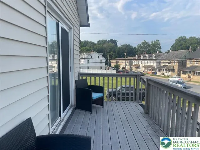 Spacious 2nd-floor apartment with 1,454 sq. ft. in a residential Northampton area. Features include a large living room, dining area, and versatile den/office. The kitchen offers a refrigerator, range, and sliding doors to a 23'×6' Trex deck overlooking the shared yard. Additional highlights: private entrance, laundry room with washer/dryer, wall-to-wall carpeting, tile bathrooms, full attic storage, and both on-street and off-street parking.