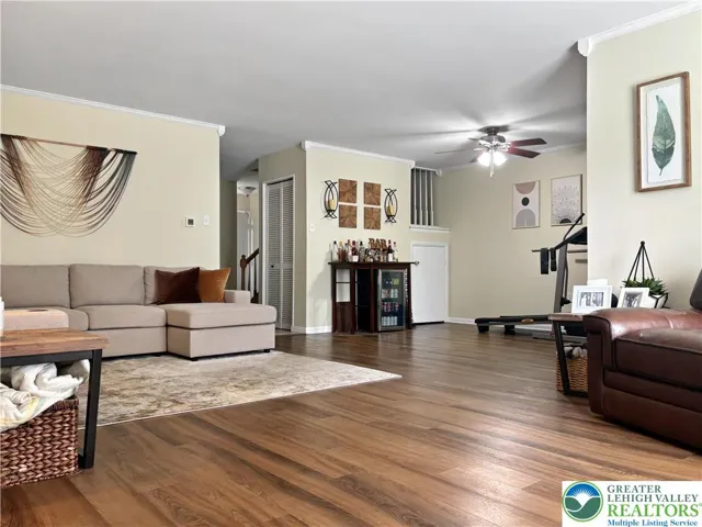 This spacious home features a finished third floor that can serve as a 4th bedroom, home office, or hobby room—perfect for flexible living. Enjoy the beauty and durability of luxury vinyl plank flooring throughout the first and second floors, complemented by ceramic tile in the kitchen, entryway, and bathrooms. The fully applianced kitchen includes a convenient pantry, while the large living room offers a cozy propane fireplace—ideal for relaxing or entertaining. A solarium with sliding doors opens to a private deck, extending your living space outdoors. With ample storage throughout, this home is perfect for those seeking both comfort and convenience.