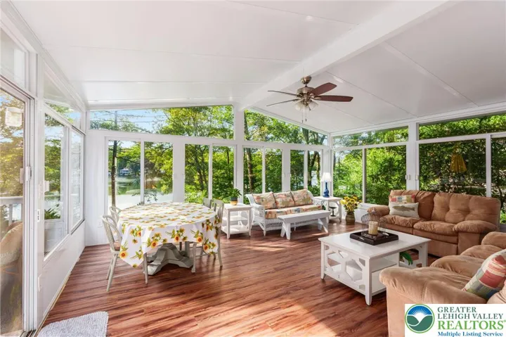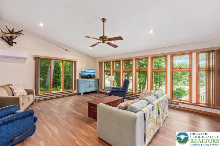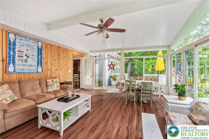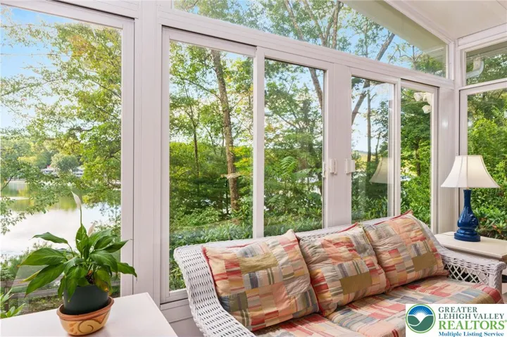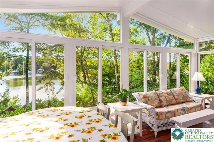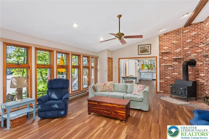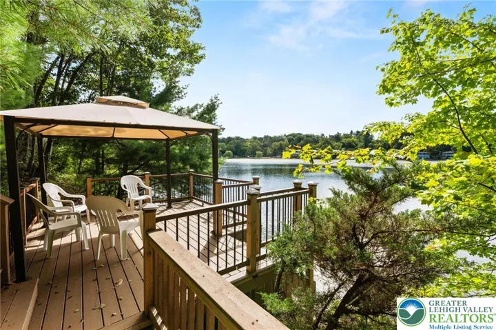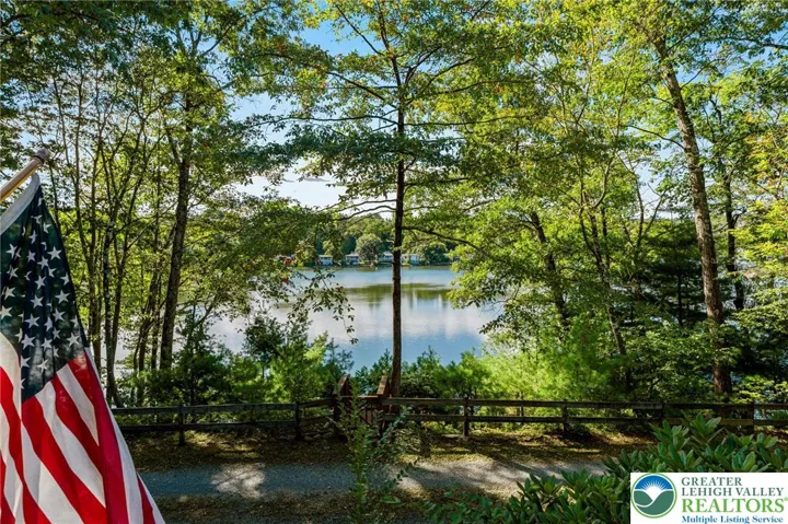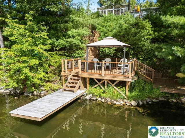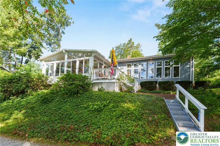 Your LAKEFRONT retreat awaits! This beautifully updated 2-bedroom, 2-bath home offers private access to tranquil Saylorsburg Lake. Take in breathtaking views from the charming Three Seasons room—perfect for peaceful relaxation or hosting warm lakeside gatherings. The thoughtfully renovated kitchen boasts abundant cabinetry and meticulous attention to detail, flowing seamlessly into the expansive, sun-drenched living room with soaring ceilings, panoramic windows, and a cozy wood stove for cool evenings. The spacious primary suite features its own en-suite bath, while the additional bedroom and full bath provide comfort and privacy for guests. Outside, a charming mezzanine deck guides you to a private dock, complete with a paddleboat and canoes for endless lakefront adventures. Ownership shares to the lake convey with the property, granting exclusive access to boating, fishing, a sandy beach, and the community clubhouse—your personal gateway to lakeside living. Three parcels are included in sale for a total of 1.18 acres. Convenient access to all major routes. Don't let this opportunity pass you by!