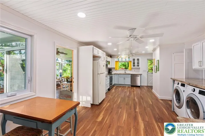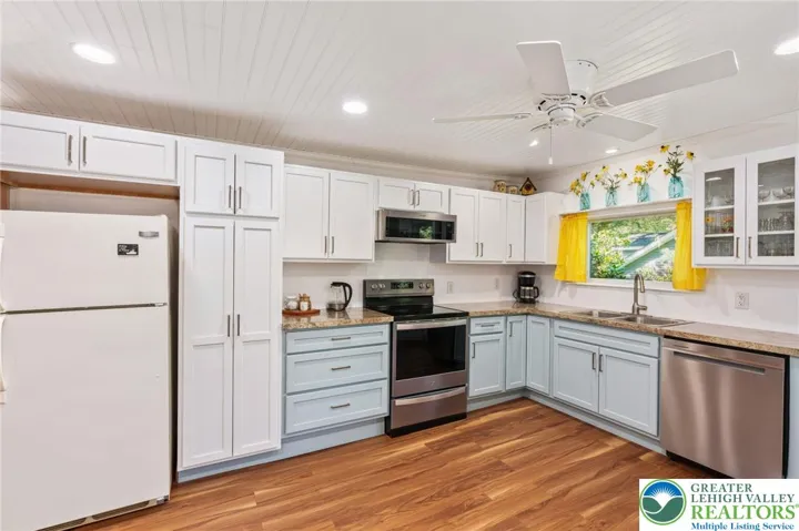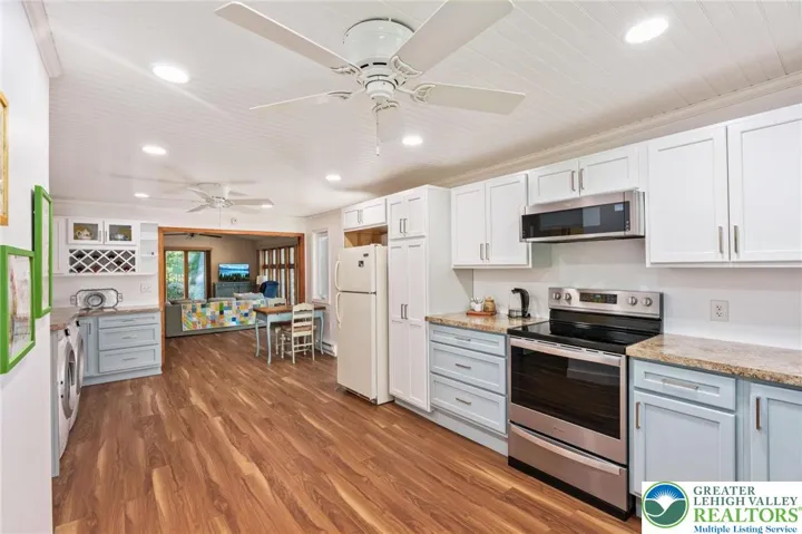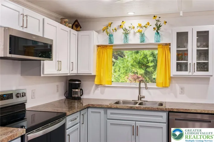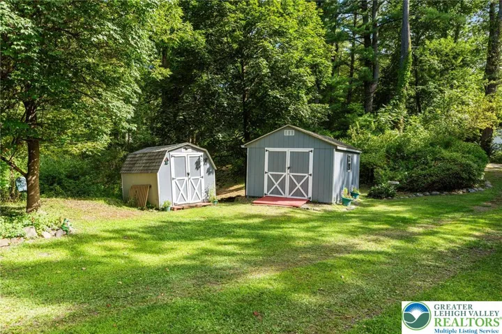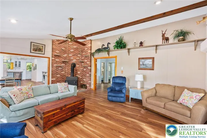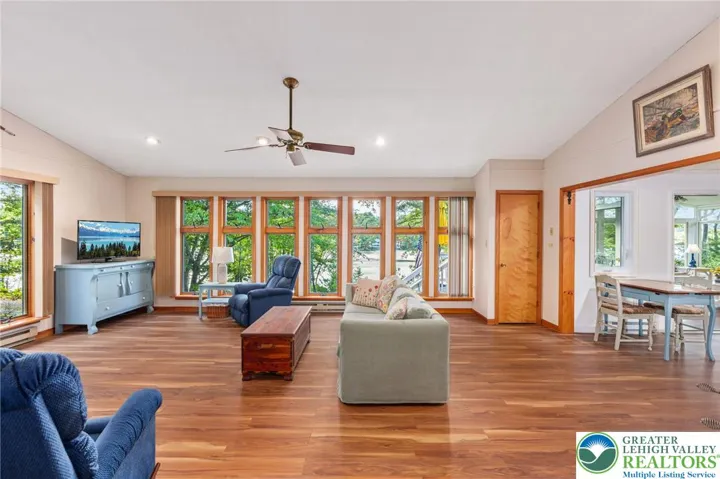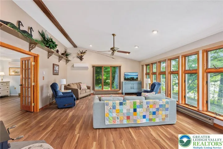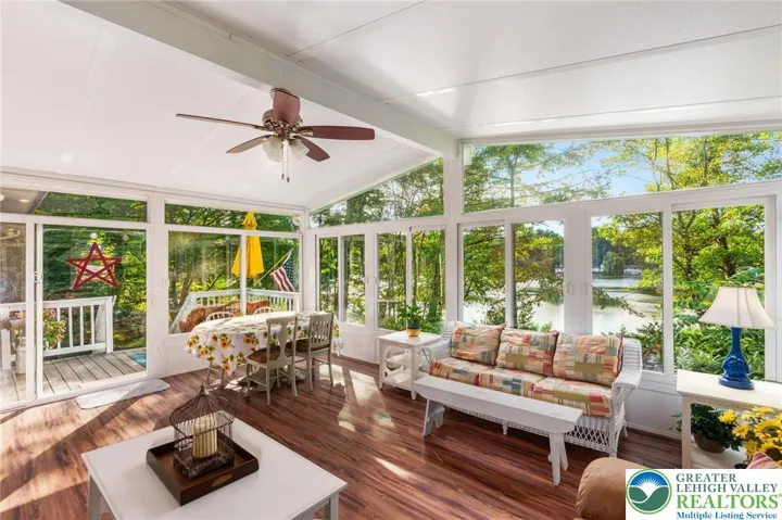 Your LAKEFRONT retreat awaits! This beautifully updated 2-bedroom, 2-bath home offers private access to tranquil Saylorsburg Lake. Take in breathtaking views from the charming Three Seasons room—perfect for peaceful relaxation or hosting warm lakeside gatherings. The thoughtfully renovated kitchen boasts abundant cabinetry and meticulous attention to detail, flowing seamlessly into the expansive, sun-drenched living room with soaring ceilings, panoramic windows, and a cozy wood stove for cool evenings. The spacious primary suite features its own en-suite bath, while the additional bedroom and full bath provide comfort and privacy for guests. Outside, a charming mezzanine deck guides you to a private dock, complete with a paddleboat and canoes for endless lakefront adventures. Ownership shares to the lake convey with the property, granting exclusive access to boating, fishing, a sandy beach, and the community clubhouse—your personal gateway to lakeside living. Three parcels are included in sale for a total of 1.18 acres. Convenient access to all major routes. Don't let this opportunity pass you by!