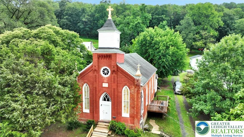 OPEN HOUSE Sat, Sep 6 9:00 AM - 11:00 AM & Sun, Sep 7 2:00 PM - 4:00 PM. Rare and reverent masterpiece, this breathtaking 18th-century church lovingly transformed into a one-of-a-kind mountain retreat blends sacred history with modern elegance. Tucked within a storybook village in the Schuylkill Haven School District, this nearly 4,000 sq. ft. sanctuary invites you into a world of soaring cathedral ceilings, a preserved choir loft, and sunken living spaces where light dances across exposed brick walls and original altar railings. Thoughtfully reimagined with a remodeled summer kitchen, a potential in-law suite or guest quarters for AirBB rental, and a detached 3-car garage with brand-new doors and 220amp service, every detail honors the past while embracing the present. The full street-to-street lot features a drive-through driveway, peaceful patio, and garden shed—all framed by the quiet majesty of the surrounding mountains. Just minutes from I-78 in Allentown and within easy reach of New York City and Philadelphia, this is not just a home, it’s a soul-stirring escape. A place where history breathes, beauty lingers, and every corner tells a story. OPEN HOUSE Sat, Sep 6 9:00 AM - 11:00 AM & Sun, Sep 7 2:00 PM - 4:00 PM. 1 Year America's Preferred Home Warranty included with the sale.