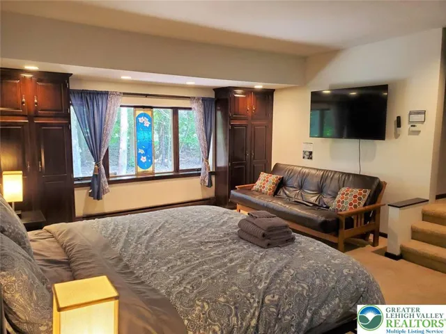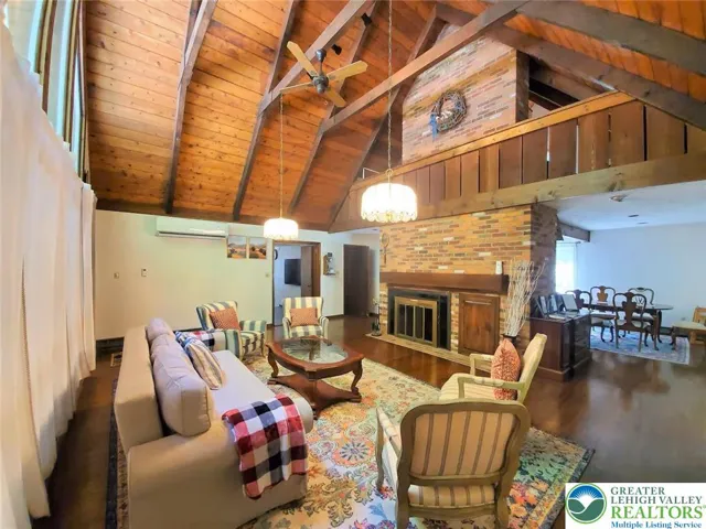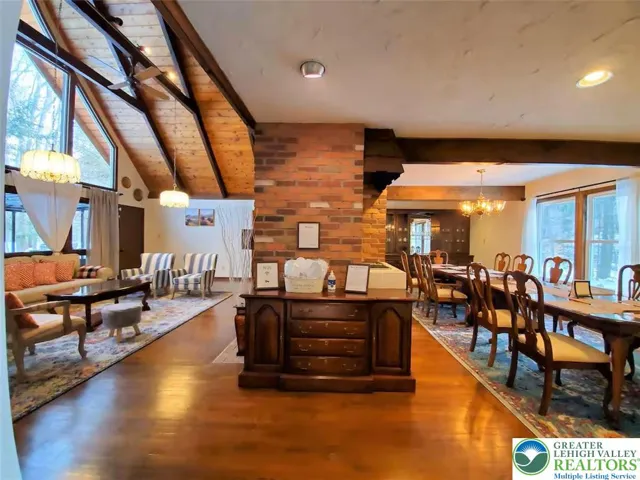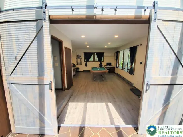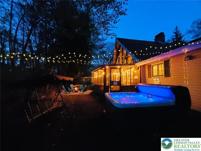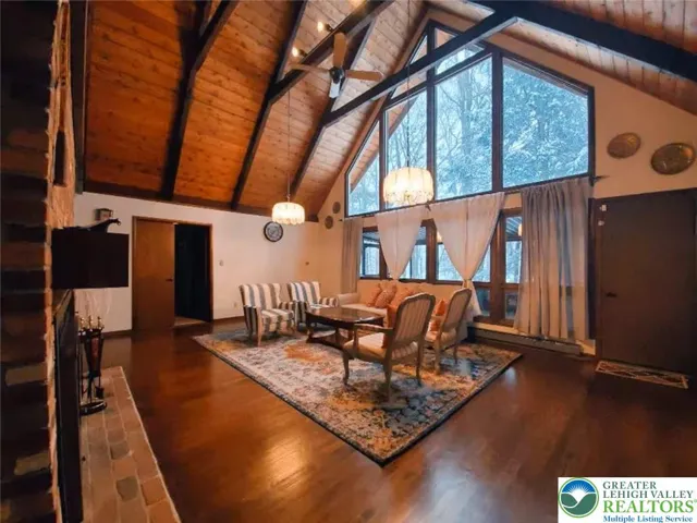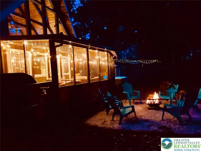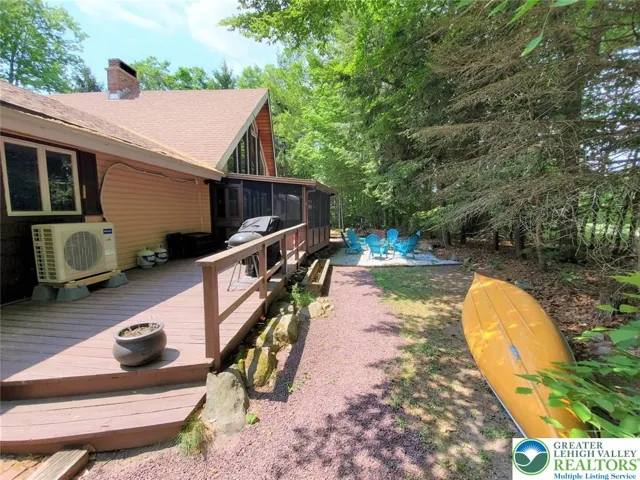 **ACTIVE SHORT TERM RENTAL** Spacious 4-bedroom, 2.5-bathroom home in Pocono Farms Country Club, ideally located near the golf course! This unique property features an atrium off the kitchen with a cozy eating area, plus a living room with vaulted ceilings, wood-burning fireplace, and a rare indoor barbecue. A large family room provides the perfect space for entertaining, while the enclosed back patio and deck with firepit offer year-round enjoyment. Enjoy the amenities of Pocono Farms including golf, pool, lake, fitness center, and more—perfect for full-time living or a weekend retreat!