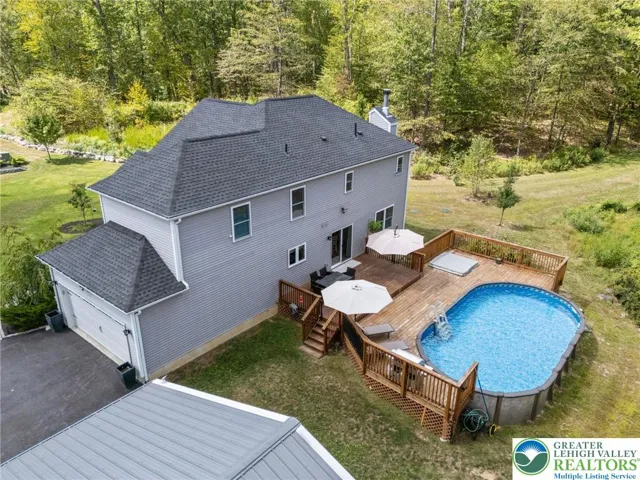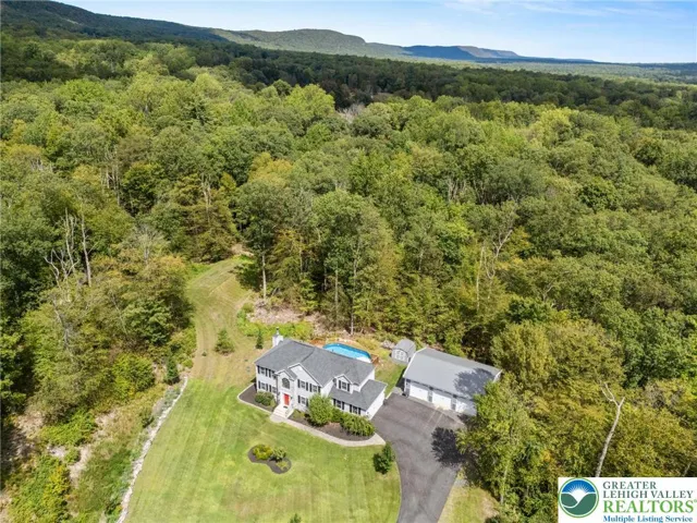This 5 years young home with just over 20 acres is ready for a new owner to love. Nestled at the foot of the beautiful Blue Mountain. This fabulous property has much to offer. Entering the paved driveway you will be greeted by this nearly new 4 bedroom 2 and 1/2 bath colonial. Plenty of storage with the 3 bay pole barn to hold your favorite toys. The property features a 3 zone lawn sprinkler system and an above ground salt water pool with adjacent hot tub. A large part of the property has been cleared to accomodate any new structures or possible pasture and riding area. All of the original stacked stone fence row markers still exist. There are also trails in the vast hardwood forest surrounding the home for walking or riding. Not to mention a large tree house. Entering the home you will have a large living room and dining room. The family room has a wood burning fireplace for the chilly nights. Just off of the eat in kitchen you can exit the home to the large deck and pool area. The kitchen is designed for ease of use and storage. Off of the kitchen is a large 2 car garage with plenty of storage. This home has a large finished basement for additional family living or office space. Also this property is registered under ACT 319 for tax savings. Not far from most major commuting arteries for NY and NJ. Close drive to the beautiful Lake Minsi and the Appalacian Trail for hiking and kayaking.