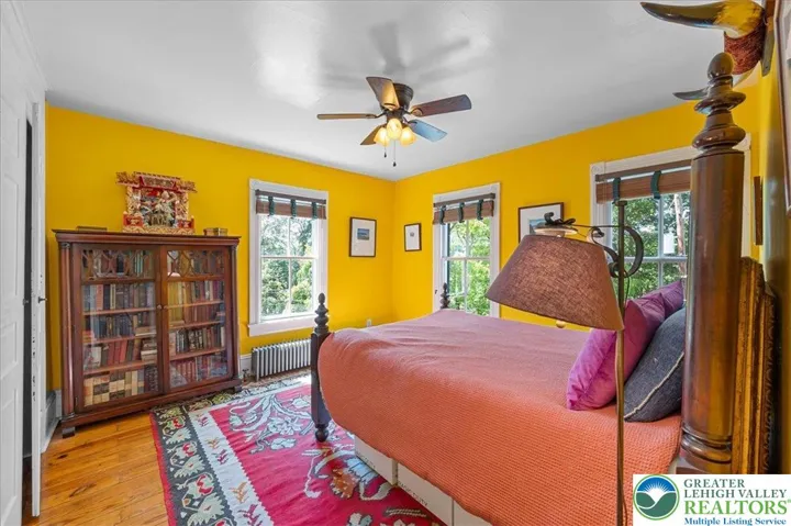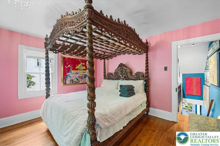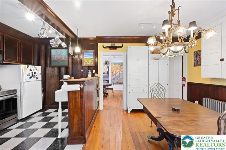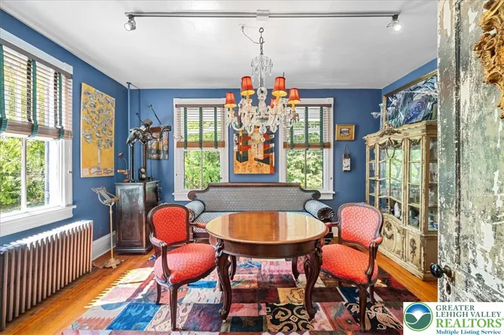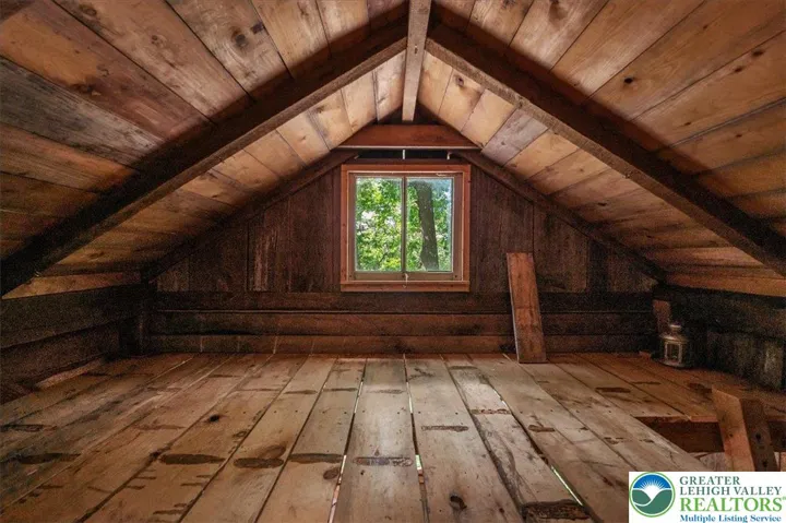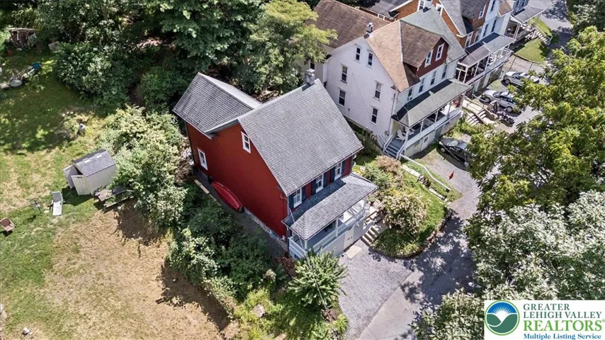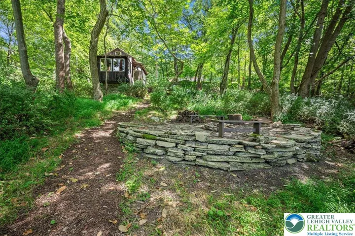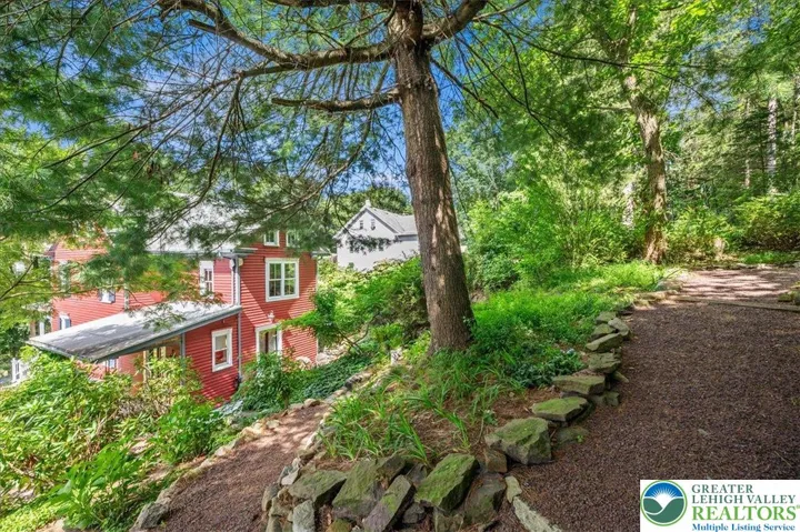 Own a piece of Jim Thorpe’s history just steps from downtown. Built c.1836 (local records) and reflecting the authentic plank-style construction often attributed to the c.1875 era, this home has been carefully restored with modern updates while preserving its character. With only three families of ownership, the property maintains its integrity, enhanced by updated wiring, plumbing, heating, and a 200-amp service. Highlights include a welcoming front porch rebuilt with period trusses and shutters, a formal dining room with wide-plank hardwood floors, and a bright living room with preserved details. The custom kitchen blends reclaimed White House Collection cabinetry, vintage fixtures, and French doors opening to the deck and gardens. Bedrooms feature enlarged closets and tranquil views, while the full bath showcases a clawfoot tub and reclaimed details. Outdoors, hand-laid stone terraces, private gardens, and a firepit frame views of Mt. Pisgah. A detached cabin, rebuilt on its original foundation, along with hand-etched doors, lighting, and more — collected from major motion pictures — add one-of-a-kind artistic provenance. Roof replacements (2007, 2012) and a rebuilt retaining wall (2023) provide long-term peace of mind. This property blends historic construction, creative detail, and lifestyle, all moments from Jim Thorpe’s dining, shops, opera house, train station, and outdoor recreation.