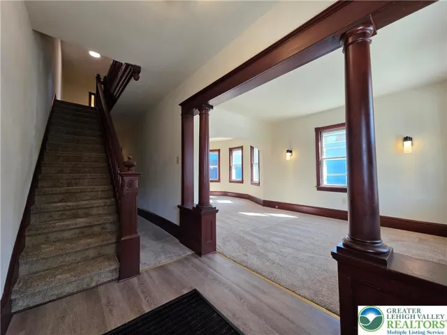 SPACIOUS, CHARMING, & UPDATED are 3 words that best describe this generous "Move-In-Ready" twin with a deep lot & detached 2-car garage located directly in the heart of Nazareth Borough. It's many offerings include new vinyl siding, a large covered front porch, original stained wood moldings throughout, a brand new kitchen w/ granite counters, 42" wood cabinets, and SS appliances, large room sizes, huge walk-up 3rd floor ready for expansion, plus brand new flooring & fresh paint throughout. Excellent location off the beaten path in a quiet, walkable neighborhood, but close to everything! Don't miss out on this Gem, schedule your showings today!