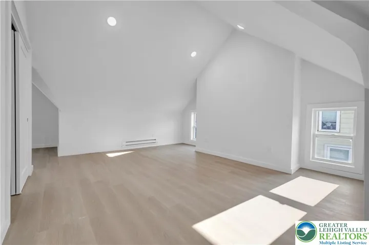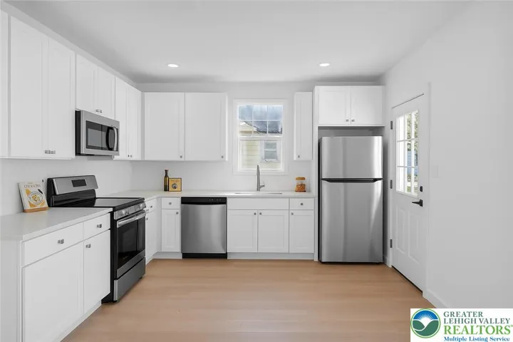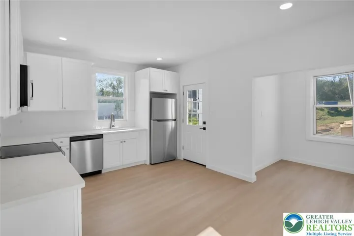 This beautifully renovated 4-bed 2.5-bath twin in the Northern Lehigh School District has been updated from top to bottom and offers all the modern amenities you could want. The inviting first floor features a bright living room, a separate dining area, and a gorgeous kitchen with quartz countertops, tiled backsplash, and brand-new stainless steel appliances. Conveniently located off the kitchen is a half bath and laundry room, with direct access to the backyard. Fresh drywall ceilings with recessed lighting and numerous new windows flood the space with natural light.