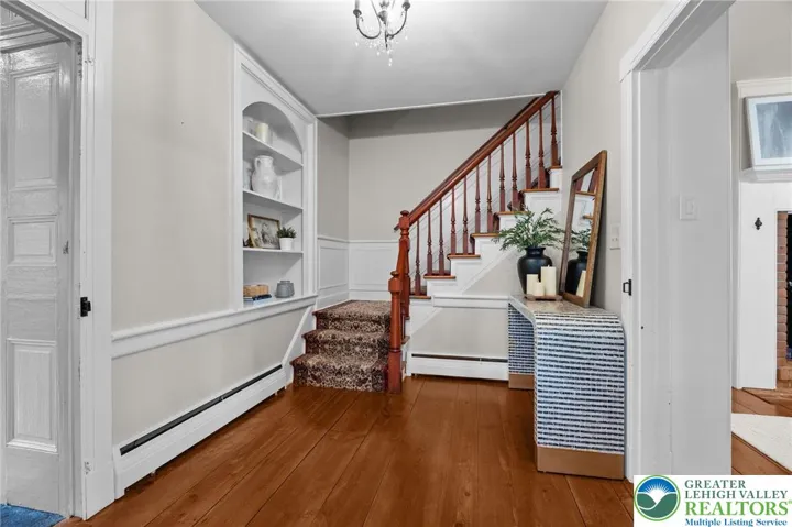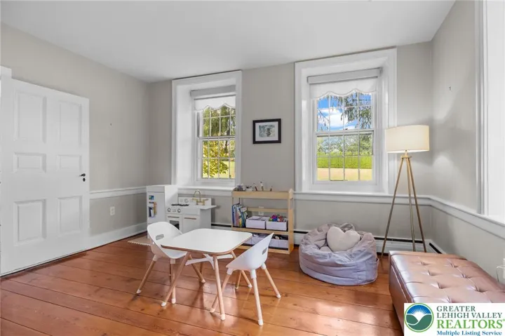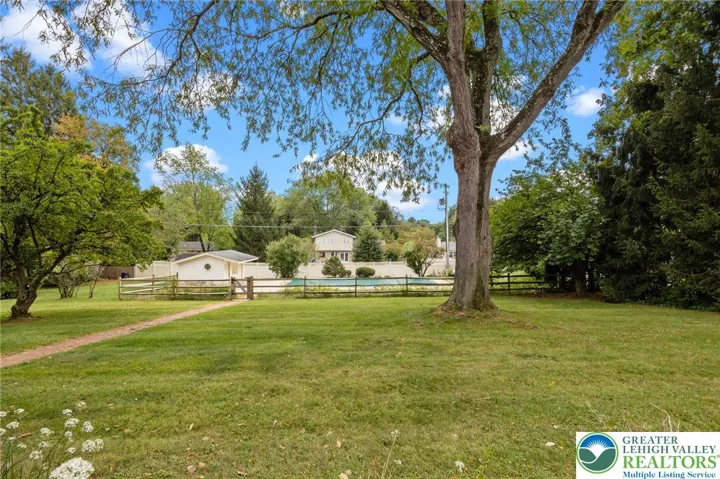 Nestled in a serene setting, this exquisite Colonial-style residence, built in 1825, seamlessly blends timeless charm with modern luxury. Spanning an impressive 3,376 square feet and featuring 5 bedrooms & 2.5 bathrooms. As you step inside, you are greeted by the warmth of rich hardwood floors that flow throughout the main living areas. The spacious living room is bright and airy and features a fireplace. The modern kitchen boasts a pantry, coordinating appliances, including a double oven, electric range with hood and granite counters. Built-ins provide additional storage and display options, while the adjacent dining area with walk-in fireplace is perfect for hosting memorable meals. A large stone and wood great room with cathedral ceilings add much more space for gatherings. Upstairs are five generously sized bedrooms with 2 full bathrooms with stall shower, tub shower, granite counters and brick tile floors. Second-floor laundry. The basement is large and has plenty of space for storage. Outside, the expansive backyard features an in-ground saltwater pool and patio. Side-entry attached garage and ample driveway space. This property sits on a generous 0.68-acre lot, providing plenty of room for outdoor activities and gardening. Close to downtown Bethlehem, so you can enjoy access to restaurants and shopping. Embrace the opportunity to make this exceptional property your own and enjoy the comfort and elegance it has to offer.