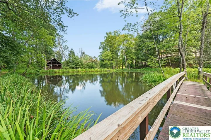 Twin Ponds Manor ~ Tucked away on over five private acres in Lower Saucon Township, this remarkable property offers a rare combination of natural beauty, historic character, and modern comfort. The home balances mid-century charm with flexible spaces for today’s living, surrounded by water, mature trees, and timeless tranquility. The unique setting features two spring-fed ponds connected by a charming bridge. Adding to the storybook feel is a historic ice house, a nod to the region’s agrarian past and a distinctive historic building type that few properties can claim. Inside, the residence offers approximately more than 3,200 finished square feet over 3 levels, with a layout that allows for both privacy and connection. The flexible upper level allows for bedrooms, offices, or creative studios, making it ideal for a variety of lifestyles. A fully finished walkout lower level with second kitchen offers the potential for updates. With ample space for gardening, recreation, and outdoor entertaining, the property blends natural serenity with the comforts of home. For those with an eye for design, this is a rare chance to craft a dream home on an extraordinary piece of land, with room for gardens, recreation, and outdoor entertaining. There are two parcels, A true sanctuary, the property blends privacy and potential in a premier location, just minutes from town conveniences.