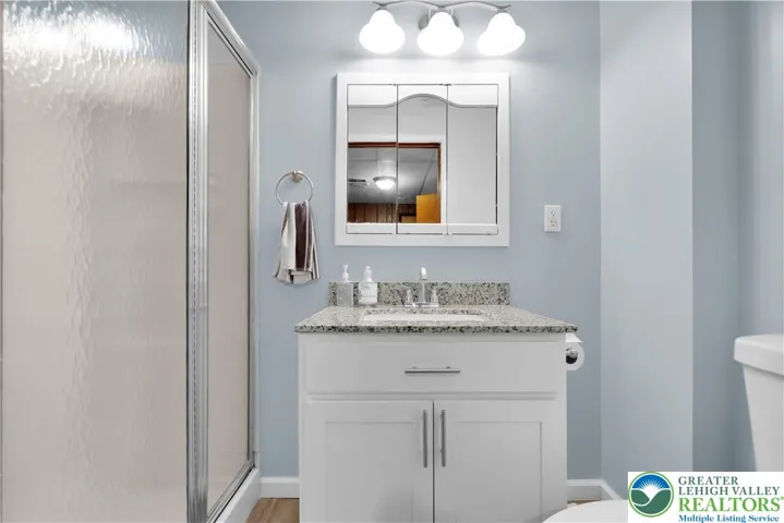 Spacious inside and out best describes this Lower Saucon updated Ranch home. The home is located in the desirable Saucon Valley Terrace neighborhood on over a third of an acre with an in ground pool and large fenced back yard. Inside on the first floor is a huge 25 x 13 living room, formal dining room, eat in kitchen with granite counters and SS appliances. There are also three bedrooms with the owners bedroom having an en suite full bath and another full bathroom in the hallway. The lower level also has a large family room with a wood fireplace, another full bath, a fourth bedroom and laundry room. Two car attached garage and large storage shed as well. A great home in a great location!