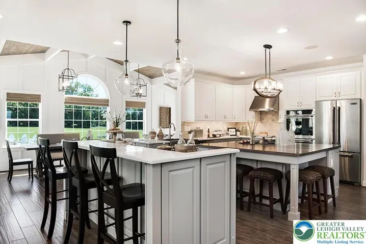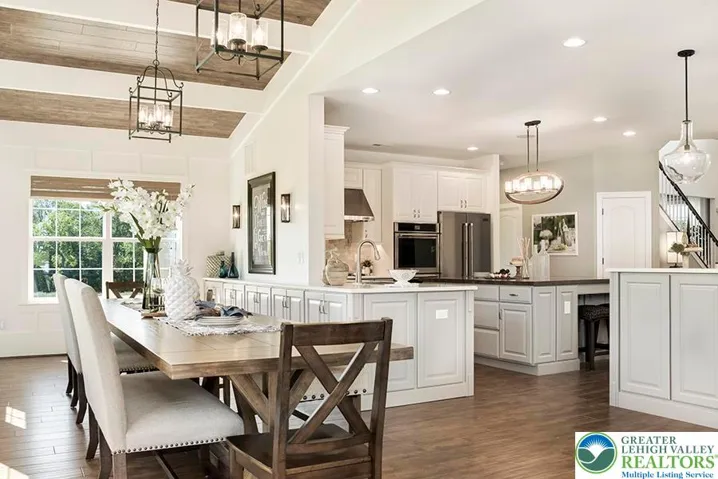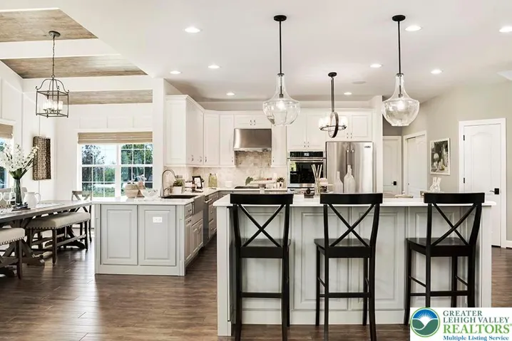 The dramatic Monroe offers 3,742 sq. ft. of elegant living space. From the 2-story foyer and turned staircase to the opulent master bedroom with master retreat, this home is a delight for living and entertaining. The airy 2-story family room allows for the dramatic Wall of Windows option and is accented by a second staircase. An expansive kitchen with 42-inch cabinets and walk-in pantry connects to a large dining room through a useful butlers pantry. Upstairs, the 4 bedrooms are remarkably large and a Jack-and-Jill bathroom provides extra privacy for children or guests. A splendid 5-bedroom option floorplan with first floor in-law suite and 4 1/2 baths is also available.