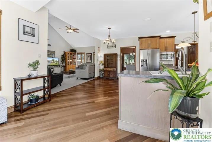 Large, beautiful custom-built colonial on 3.5 acres in Northampton school district! 5 bedrooms, including a primary on the 1st floor (In-law suite, expanded family area) and a primary on the 2nd floor! 3 full baths, 2 half baths (the one in the basement is plumbed for a shower, too!), large bright kitchen and lots of great space for entertaining! The finished family room in the basement is the perfect place to do so. It leads directly to the in ground pool, really incredible space! The home has a 2 zone heat pump system with oil back-up, a propane fireplace and all new entry doors. Beautiful landscaping and hardscaping, complete with large fire pit. Too many other great features to list. Must see! Contact me for a private tour! Be sure to view the 3D tour!