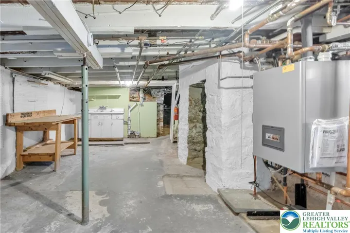Outside, enjoy a covered rear porch, fenced yard, and utility shed. Systems include efficient gas heat and hot water with a modern combi boiler, plus supplemental electric baseboard heat in the walk-through bedroom. In the basement are laundry hookups (laundry hookups can also be intalled in the kitchen), and a utility sink area and a workbench.