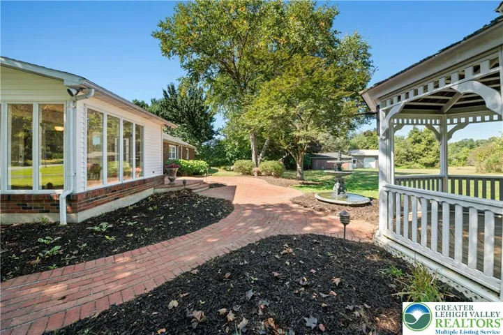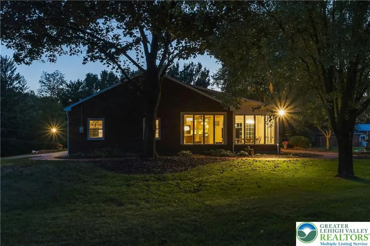 This mid century brick ranch was solidly crafted by a meticulous owner for his family and lovingly cherished by the same family for the last 65 years. With three parcels totaling more than 13 acres, the prime location offers an unparalleled investment opportunity in the sought after Saucon Valley School District. Enjoy a rural lifestyle without sacrificing conveniences, just minutes from I-78, NJ, Hellertown and Bethlehem. The classic floor plan features a living room with fireplace, picture window and hardwood floors under wall-to-wall carpeting. The dining room is outfitted with chair railing and crown molding and the kitchen has been expanded to accommodate abundant custom cherry cabinets and a breakfast room with a bay window. Walls-of-windows in the sunroom capture views of the lawns, trees and patios. 3 bedrooms and a full bath complete the first floor. The lower level offers a family room with another brick fireplace, full bath, exercise room and mechanical/laundry room with cabinetry. A beautiful brick patio, fountain and gazebo enjoy front row seats to views of your own rolling meadows. Collectors, tinkerers, equipment, toys, chickens, pets and horses will be easily accommodated in a group of buildings including a solidly built workshop, chicken barn with outdoor run, equipment parking and a large pole barn with concrete floors. This is a rare opportunity to purchase substantial acreage in a sought-after location perfect for country pursuits.