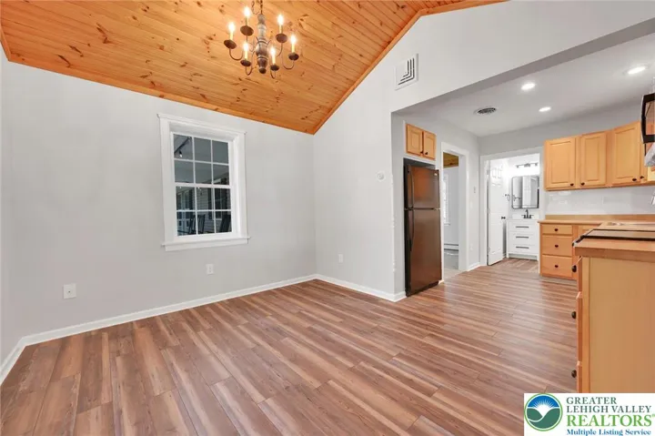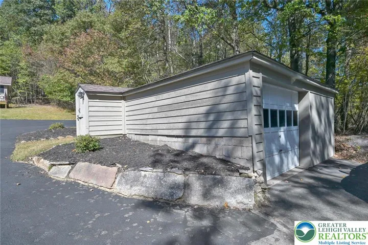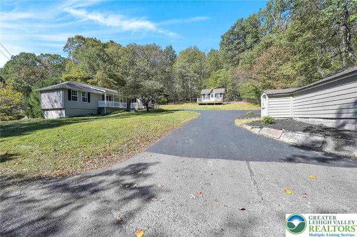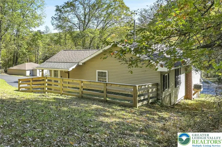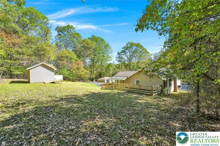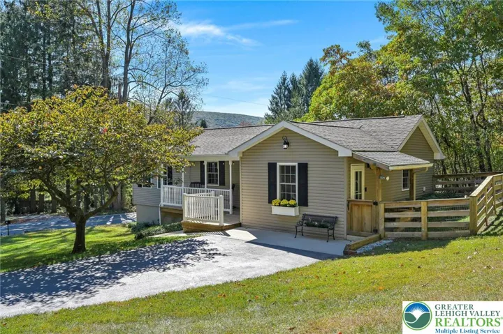 Your Peaceful Retreat Awaits! Step into effortless one-floor living in this beautifully updated home nestled on nearly 2 wooded acres—where comfort meets nature. Home is located just a few minutes drive to Mauch Chunk Lake Park, Historic Downtown Jim Thorpe and beautiful Owl Creek Reservoir! Interior is spacious & stylish! Enjoy generously sized rooms with tasteful updates throughout. Central Air keeps the home cool in summer, oil BB heat with radiant heat in the kitchen and dining areas keep the home cozy warm during winter months! The inviting kitchen flows seamlessly into a cozy dining area, opening to a fenced backyard—perfect for pets or playtime. Smart Layout - A convenient powder room with laundry sits just off the kitchen, while the welcoming living room offers a warm space to unwind. Down the hall, you'll find two spacious bedrooms and a full bath. An unfinished basement and attic provide ample storage. Outdoor Bliss - Relax on the charming porch and take in serene wooded views. A beautiful storage building sits behind the home, adding both function and flair. Parking Perks - An oversized one-car garage and a large paved driveway offer plenty of parking for guests and toys. Call now to schedule! Offered at $314,900