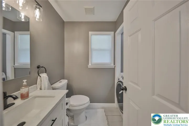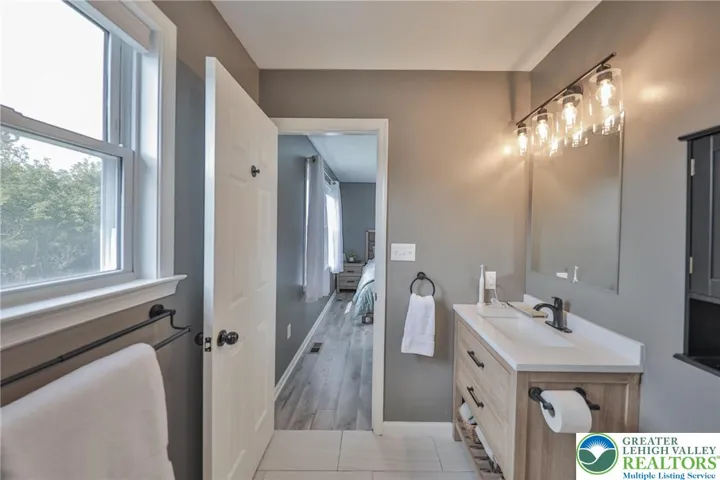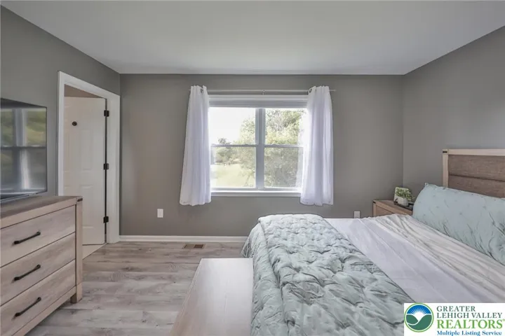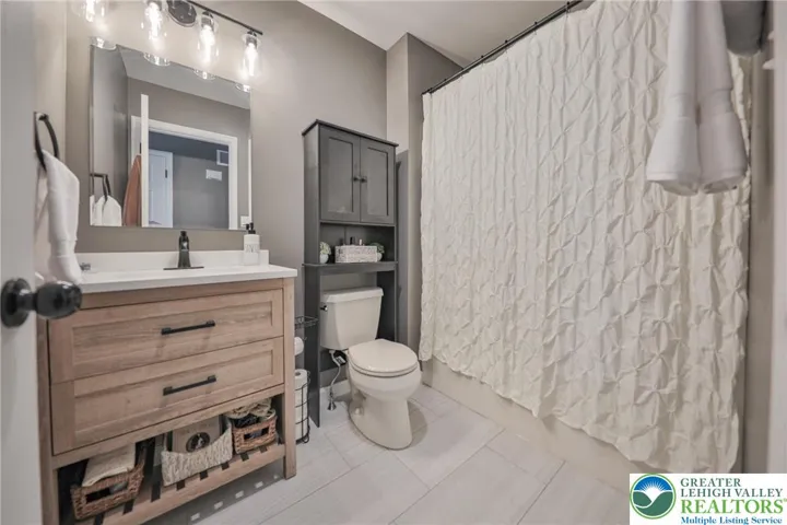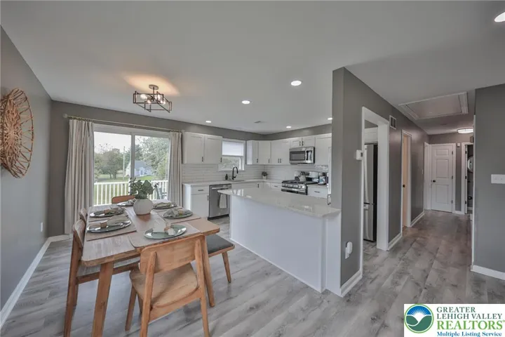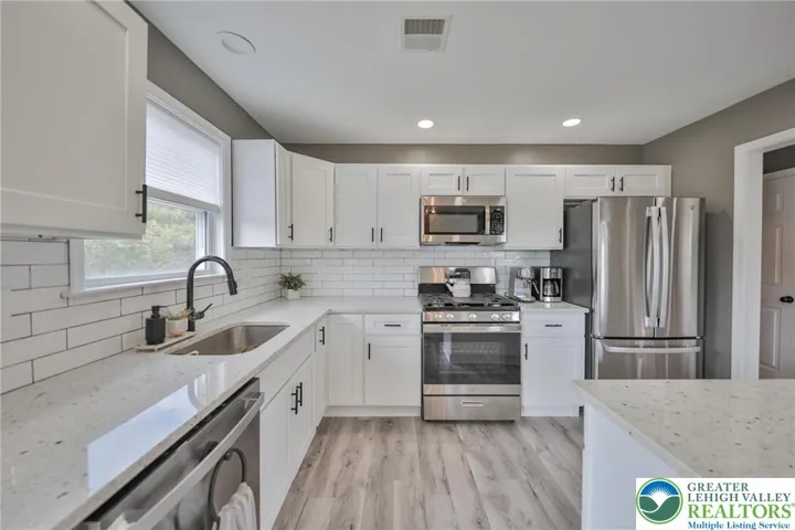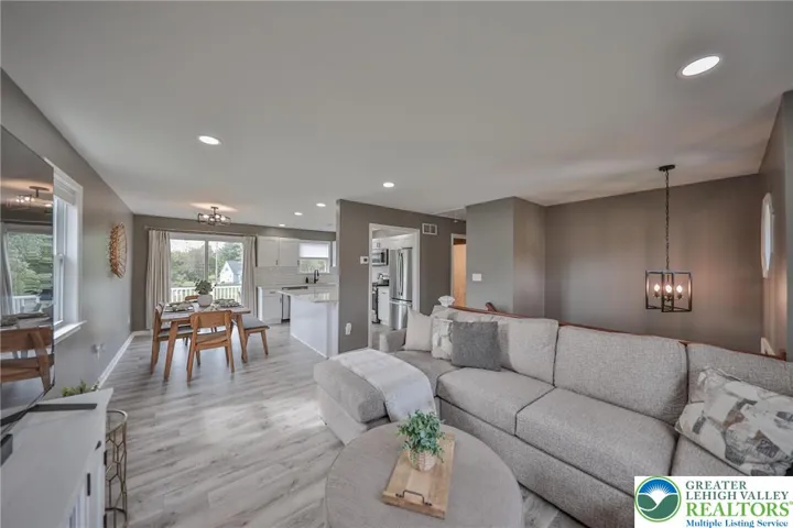 This IMMACULATE 5 bedroom home in desirable NAZARETH SCHOOL DISTRICT and the small town of Stockertown, has been completely RENOVATED and is situated in a PRIME neighborhood centrally located to many conveniences. Just over the NJ border, this home is just Minutes to Target and Walmart shopping centers, grocery, golf courses, schools, biking and hiking trails, park and ride, and offers easy access to routes 22 and 33. Polished with a modern flair, this above ground bi-level offers an expansive open concept design that will delight those who enjoy entertaining. The kitchen has been redone with sleek counters, subway tiled backsplash, gas cooking, shiny stainless steel appliances, and an oversized peninsula with breakfast bar. Sliding doors in the sun filled dining area lead to a trex deck that's fabulous in size and ready for you to relax and unwind! Enjoy beautiful updated bathrooms, well sized bedrooms, and a convenient modern en-suite for the primary bedroom. Game days just got better because the lower level has an expertly remodeled family room set up with sliding doors that lead to a SECOND DECK! A half bath, laundry, 2 bedrooms, and garage access complete this floor. Public water and sewer, New LVP flooring throughout, new roof, new HW heater, and new heating system in 2024. New AC 2022, New fenced in yard- you will be PROUD to call this place home sweet home! Turn Key is here which means you keep more money in your pocket because there's no need to change a thing.