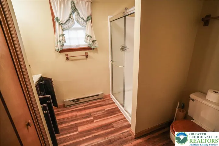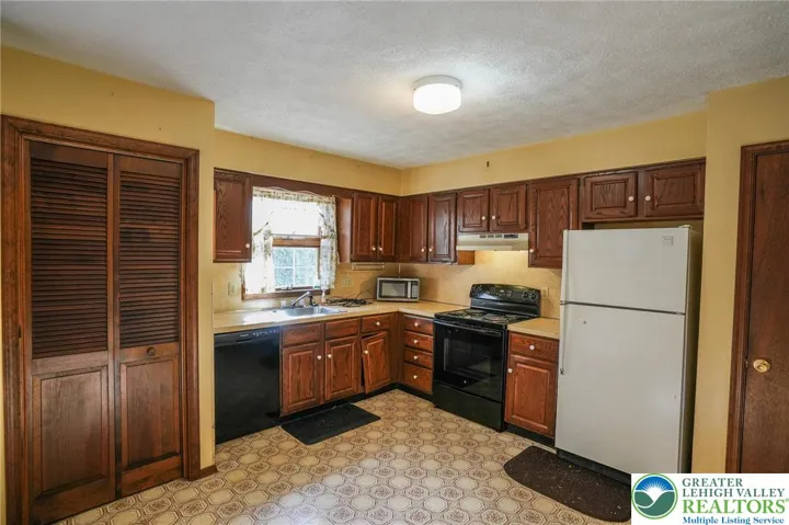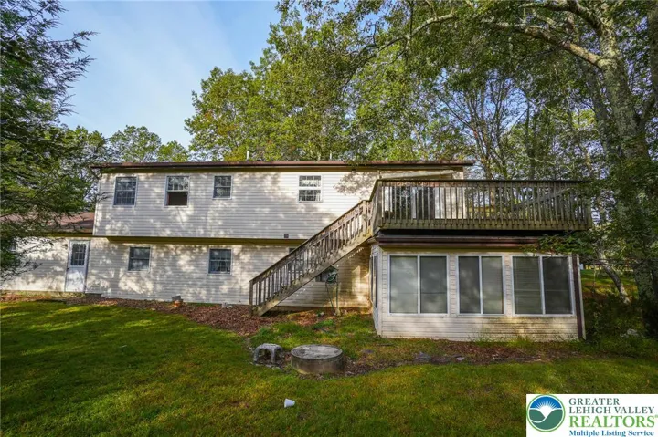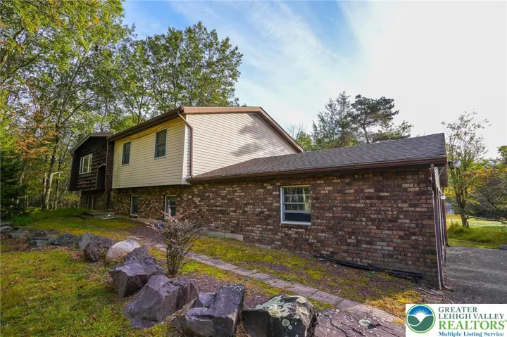 TOWAMENSING TRAILS—4BR/2.5BA bilevel on a serene wooded lot with great community amenities! Residents enjoy access to a 190-acre lake, sandy beach, outdoor pool, clubhouse with lounge/restaurant, boat rentals, and sports courts/playgrounds (badges required for amenities). Outside, a paved drive leads to the 2-car attached garage, plus a rear deck and shed. Inside, the main level features an open flow between the living room with fireplace, kitchen with laundry, and dining room with deck walkout, plus a convenient primary bedroom with private half bath. The lower level provides excellent finished space with a full bath, office area, large family room, and a sunroom—great for hobby/work-from-home or extended living. Just minutes to Lake Harmony (skiing, water sports, dining), Historic Jim Thorpe (Asa Packer Mansion, Old Jail Museum, shops), and Lehigh Gorge State Park with hiking, biking, and whitewater rafting. Fantastic location for four-season Pocono fun and easy commuting via PA Turnpike/I-476 and Rt 903. Sale is AS-IS; buyer responsible for all inspections and repairs, including septic pumping.