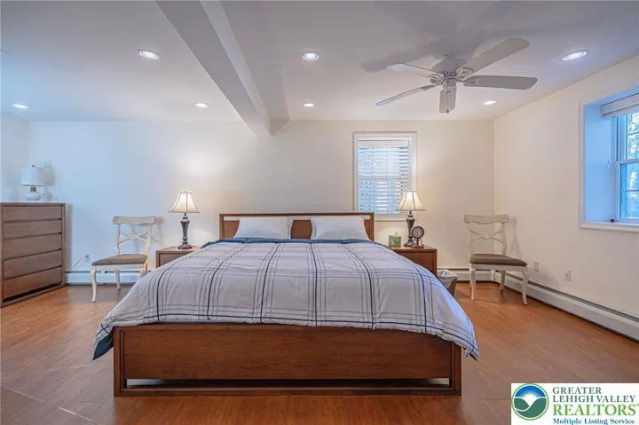 The main floor offers an airy open layout with gleaming hardwood floors, expansive windows, and a wood-burning fireplace that anchors the space in warmth and sophistication. The sunroom, wrapped in glass, feels like a private sanctuary overlooking the lake—perfect for morning coffee or sunset cocktails. Downstairs, a secluded primary suite and spacious family room create a true spa-like escape, with easy access to storage for your kayaks and lake gear. Upstairs, four serene bedrooms and two full baths welcome family and guests in complete comfort.