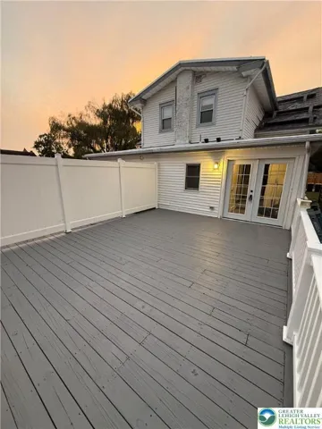 Outside, relax on the covered porch or entertain on the large wood deck. The backyard provides a great space for gatherings and outdoor enjoyment.