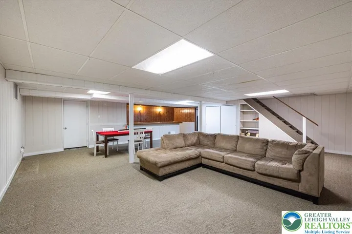 The spacious primary bedroom offers a peaceful retreat, while the finished basement adds even more living space with a custom bar—ideal for movie nights, celebrations, or a game room setup.