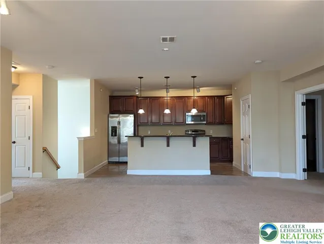 Fantastic 2nd floor, open concept condo in Mountain Park. Kitchen features, 42" cabinets, granite countertops, center island with seating for 4, stainless appliances, closet pantry. The kitchen is open to the great room with access to covered balcony with nature views. The master bedroom impresses with vaulted ceiling, Palladian window, large walk in closet, large tiled bath with double granite vanity, wide walk in shower and private toilet. 2 additional bedrooms and full bath complete this outstanding floor plan. Seconds to 78, Lehigh University ( walk to Lehigh's athletic fields). Minutes to St Luke's and Lehigh Valley Hospitals. 2 Pets permitted on a case by case basis. Dog weight limit is 65lbs per the HOA. Cats must be spayed with documentation.
