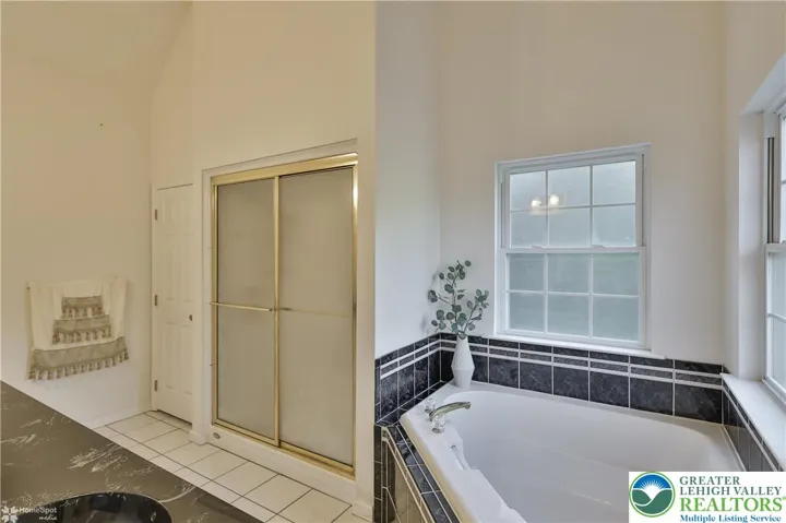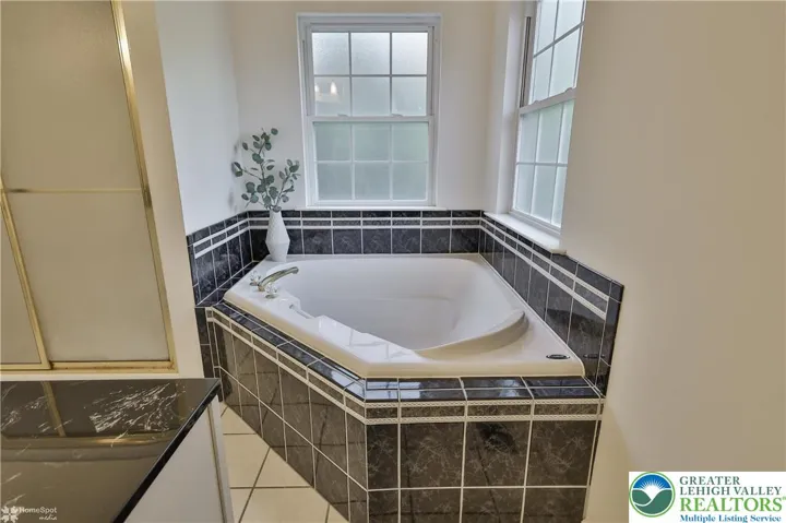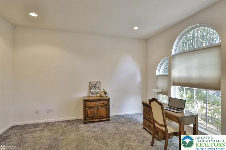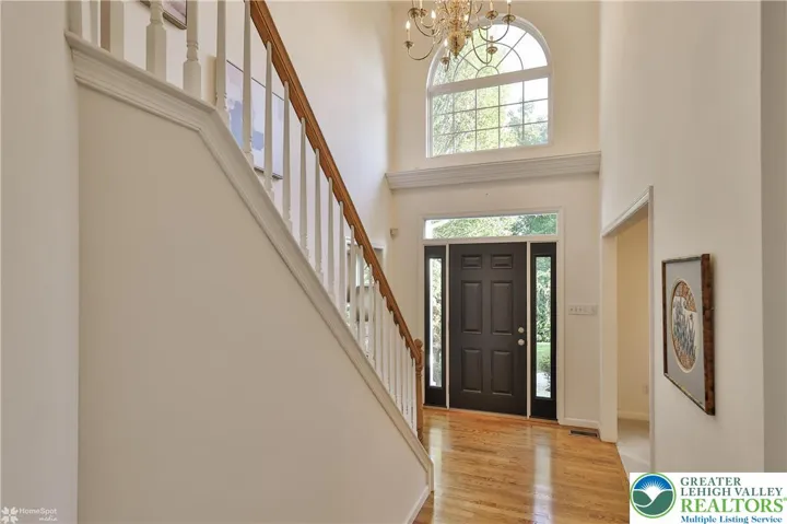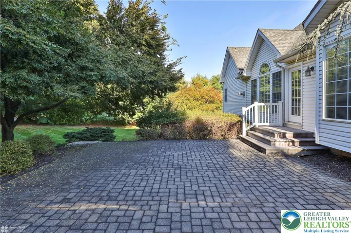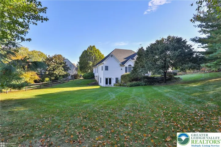Welcome home to this spacious 4-bedroom, 2.5-bath residence nestled at the end of a quiet cul de sac in the highly acclaimed East Penn school district. Step into the dramatic two-story foyer, flanked by a private office on one side and an elegant formal dining room on the other, perfect for entertaining guests or working from home. The inviting family room features soaring two-story ceilings and a beautiful stone fireplace, seamlessly flowing into the open-concept kitchen and dining area. The kitchen is well designed with generous counter seating, plus a versatile space that can serve as a butler’s pantry or study area. Enjoy indoor-outdoor living with a paver patio accessible right from the kitchen and family room—an ideal spot for gatherings or morning coffee. The first-floor master suite boasts a spacious walk-in closet and a luxurious bathroom for your comfort and convenience. Upstairs, a balcony overlooks the family room, while three additional bedrooms and a full bath featuring double vanities and a skylight offer ample space for family and guests. The expansive basement includes a finished recreation area with direct access to a second patio, as well as a high-ceilinged unfinished section brimming with future possibilities. Additional highlights include a two-car garage and an adjacent storage room. All this, in a peaceful yet convenient location close to amenities, making this home the perfect blend of comfort, functionality, and style.