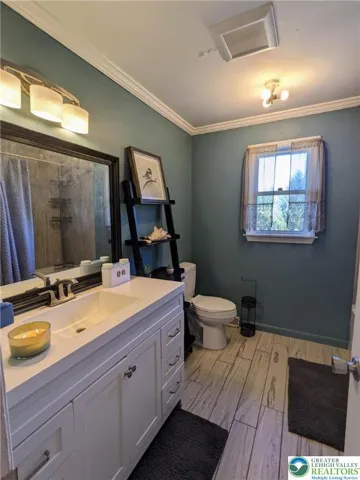 4 BR 3.5 bath Moore Twp colonial w/ in ground pool on a 1 acre lot * Formal living & dining rooms * 1st floor family room w/ wood burning fireplace * Eat in kitchen w/ stainless steel appliances * 1st floor laundry & powder room * 4 BR’s & 2 full baths on the 2nd floor * Walk out lower level with full bath * Huge rear deck * Fire pit area * Private back yard * 2 car garage * Amazing views * Washer, dryer & refrigerator remain * House needs some cosmetic improvements and is priced accordingly * Great opportunity to build sweat equity!
