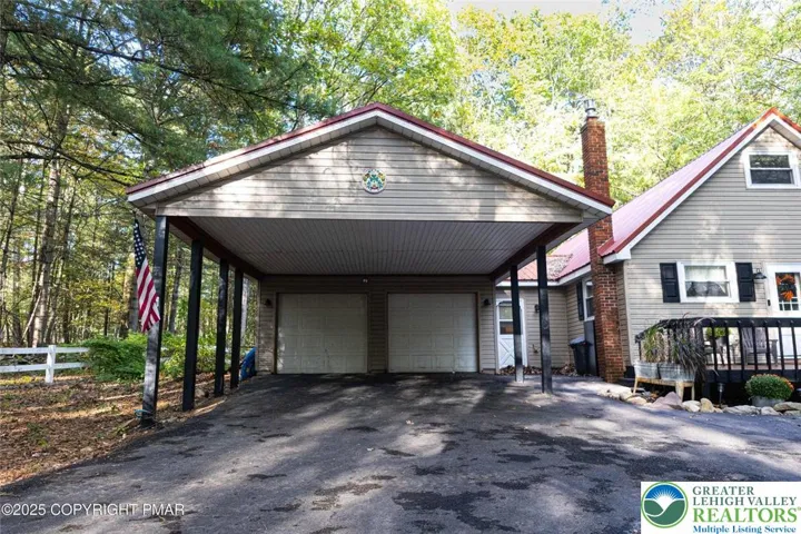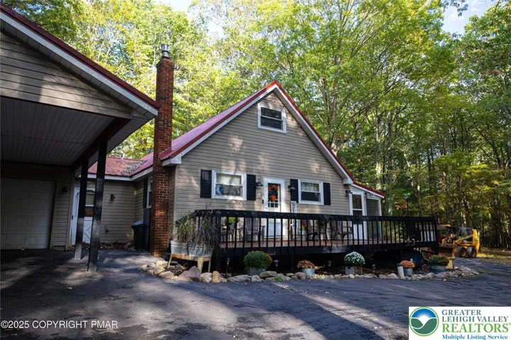 Welcome to your private woodland escape! This beautifully updated 4-bedroom, 2-bath chalet-style home sits on 2.95 mostly wooded acres, offering peace, privacy, and plenty of space to roam. The property features two serene ponds, a paved circular driveway, and a two-car attached garage with a convenient overhang. Inside, enjoy a completely refreshed interior with new flooring throughout, all new windows, stylish light fixtures, and a fully remodeled bathroom. The kitchen has been thoughtfully updated with modern touches, and comfort is key with two mini-split units in the bedrooms, a propane fireplace and stove, plus a brand new propane furnace to be installed before closing. Outbuildings galore! You'll find four large sheds for storage or hobbies, plus a detached large carport perfect for workshop space or outdoor toys. The home also boasts a newer metal roof and a new well and pump installed just 4 years ago. This property has it all—privacy, charm, and room to grow. Don't miss your chance to own this one-of-a-kind retreat!