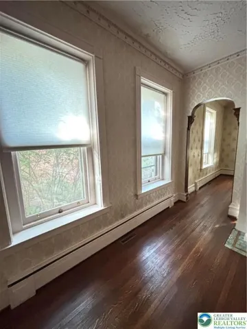Featuring two decorative fireplaces and soaring ceilings, this home offers a grand, historic feel throughout. Step onto your porch to enjoy the glow of holiday lights and the beauty of downtown’s historic streets. Located in a spectacular Victorian home that radiates old-world charm the moment you walk in.