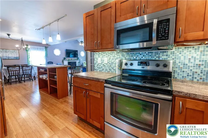 Welcome to this charming 5-bedroom, 3-bath home nestled in the scenic community of Winona Lakes. Step inside to a bright open-concept floor plan featuring a stunning 2-story family room w/a vaulted ceiling, skylight, ceiling fan, brickfront wood-burning fireplace, & distinctive hexagonal windows that fill the space w/natural light. The cozy dining area offers sliding door access to the deck, while the quaint kitchen is complete w/stainless steel appliances, tiled backsplash, recessed & under-cabinet lighting, a center island w/bar seating & pendant lights, & a convenient stackable washer/dryer nook. The first floor also includes a comfortable guest bedroom w/wall-to-wall carpet & a ceiling fan, plus a full bath w/tiled floors & a tiled tub/shower combo. Upstairs, you’ll find 3 additional bedrooms—2 w/ceiling fans—& a full hall bath featuring tiled floors & walls, a tiled tub/shower combo, & spotlights. The fully finished walkout basement expands your living space w/a carpeted recreation area, a 5th bedroom perfect for visiting friends and family, a 3rd full bath w/modern tile finishes, & a storage area w/laundry. Enjoy the crisp mountain air from the dual decks, relax in the screened-in porch, or make lasting memories in the backyard w/the above-ground pool & playground set—ideal for family fun & outdoor entertaining. Enjoy in the beauty of nature w/hiking trails & scenic lakes nearby. Close to US-209 for easy commute, shops, restaurants & so much more!