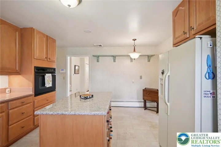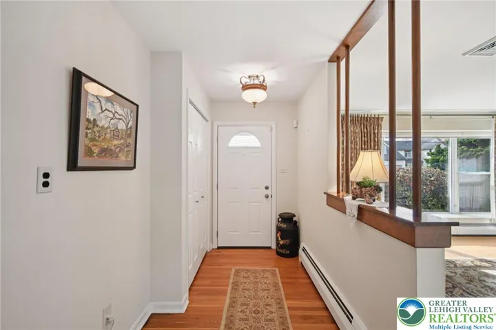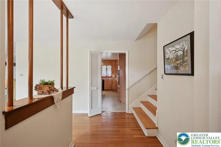 This is the special home everyone looks for. Gleaming hardwood floors and spotless condition. Hard to find a better cared for home. The solid structure of stone and vinyl is both appealing and maintenance free. The hardscape/landscape stone paver entrance into the flagstone foyer and immediately overlooking a gorgeous living room, stone fireplace, built in bookcase and beautiful windows everywhere is the wonderful first impression. Beautifully remodeled light stain wood cabinets, center island, pantry, and great counter space is a wonderful update. An addition that creates a first floor family room, 1/2 bath, 1st floor laundry with access to the beautiful backyard is an incredible feature. The bedrooms are all nice size, there's a primary bedroom and bath that is also renovated with walk in shower and vanity and a wall full of closet space. Cedar closet in the hall. There's also a lower level rec room, with more closet space, another 1/2 bath and access to 2 car garage and walk out to sunroom, with wonderful stone tile floor that continues outside and creates an outdoor paradise overlooking a beautiful yard just as manicured as the interior of this home. Take advantage of spotlights, awnings, dining areas, so you can always enjoy your backyard. There's also an additional basement level for storage, utilities and an new bilco door providing convenient access to the back yard. . There is so much to see in this truly special home it's a "must see" on your list.