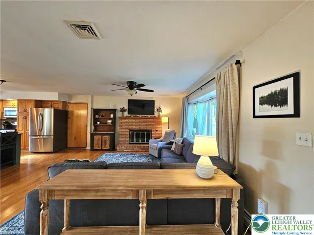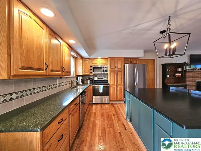 Welcome to this beautifully maintained 4-bedroom, 1½-bath raised ranch in highly desirable Williams Township, perfectly situated on a serene .8-acre lot surrounded by mature landscaping. Step inside to discover a warm and inviting open-concept living area featuring gleaming hardwood floors, a wood-burning fireplace, and an abundance of natural light. The modern kitchen and dining area boast quartz countertops, updated appliances, and a sliding door that opens to a Trex deck—the perfect spot to relax and take in the view of the fenced backyard adorned with lilacs, hydrangeas, and other mature plantings. The main level offers three spacious bedrooms, including a primary suite with a private powder room, plus a modern full bath with a separate water closet and tub/shower area. Downstairs, the finished lower level features stylish LVP flooring, a large family room highlighted by a corner stone hearth with a decorative Franklin stove, and a recreation room with a private outside entrance—ideal for guests, a home office, or multigenerational living. An additional bedroom, laundry area (partially plumbed for an additional bath), and generous storage space complete this level. Comfort meets efficiency with oil baseboard heat, central air conditioning, and a whole-house fan. This charming home offers space, comfort, and style—all in a peaceful country setting, yet convenient to major routes, schools, and amenities. A true gem in Williams Township! Showings begin on Thursday, 11/6!