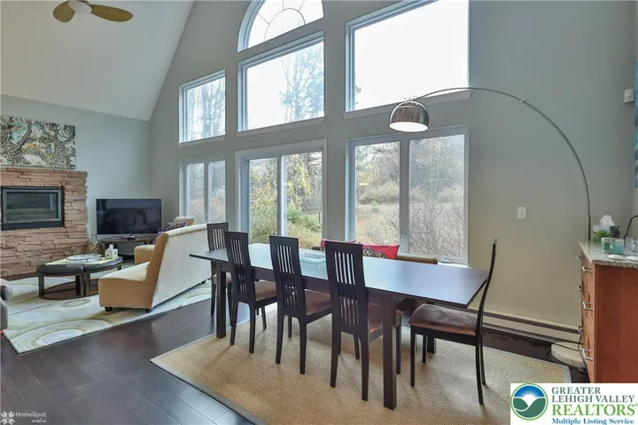 Absolutely stunning A-Frame within Towamensing Trails! This custom home provides quality construction & finishes throughout! Beautiful setting with a fenced in yard! Mature landscaping that provides an abundance of delicious pears, berries, grapes & flowering plants! Inside you are welcomed by the oversized foyer with a large closet for coats or storage! High ceilings throughout this spacious home! Oversized kitchen offers ample cabinet storage & workspace! Granite counters, black appliances, eat at island with additional storage below! Sliding door provides access to the rear paver patio & serene yard! Spacious living area with two story ceilings, wall of windows for stunning views, propane stone fireplace, real bamboo hardwood floors & neutral decor! First floor laundry room with washer& dryer included! Two large first floor bedrooms with 9' ceilings and a modern full bath with tile and glass shower door! Upstairs boasts flex space with loft area! Master bedroom with vaulted ceiling and ample closet space! Fourth bedroom with custom wall colors, vaulted ceilings & more storage space! Second floor full bath offers a large soaking tub/shower and modern vanity! Oversized one car garage & access to the crawl space! Close to hiking, biking, ski resorts, Jim Thorpe, Lake Harmony, eateries & more! Home has been professionally cleaned & well maintained! Upgraded foil covered insulation! Original owners since 2008, this home has never been rented, smoked in and always pet free!