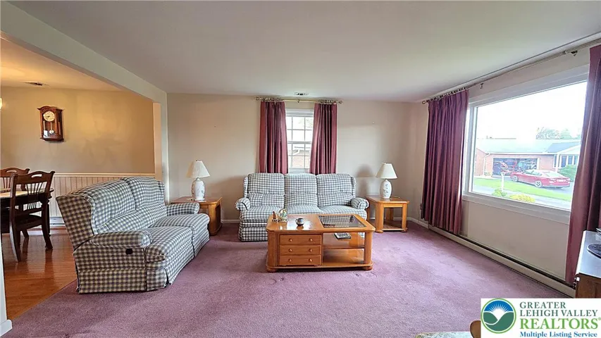 Welcome to this charming bi-level home, perfectly situated on a quiet cul-de-sac in Whitehall Township. Enjoy a chef's delight in the custom kitchen, featuring 48-inch cabinets, granite countertops, and black appliances. The main level offers elegant hardwood floors, currently preserved under wall-to-wall carpeting. An addition in 1980 created a spacious master suite with its own private bath and large closets. The finished lower level provides a versatile family room for entertaining, with easy access to a covered patio and a large, manicured backyard. A three-season sunroom offers a peaceful retreat with steps leading down to the yard and a custom-built, two-level barn-style shed. Recent upgrades include a new roof in 2014 and hot water heater replacements in 2019 and 2021. The 3 car garage is perfect for the car collector or to accommodate all your storage needs. For your convenience the home offers large and numerous closet space. The property is conveniently located near the public pool, a neighborhood park, and schools. Don't miss out on this well cared for home which is priced to sell.