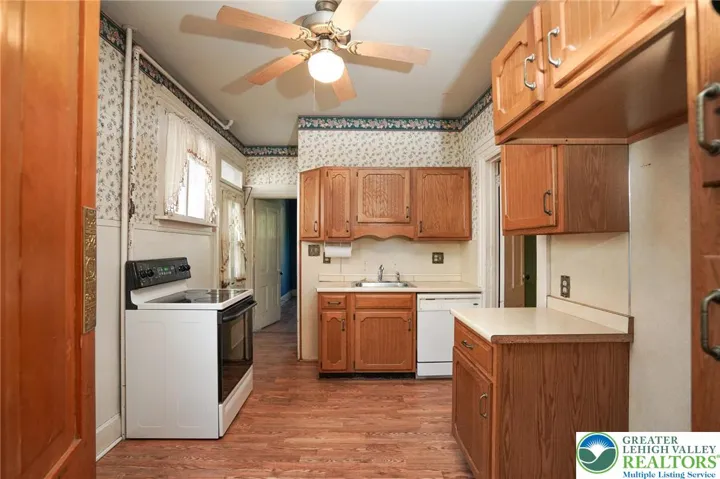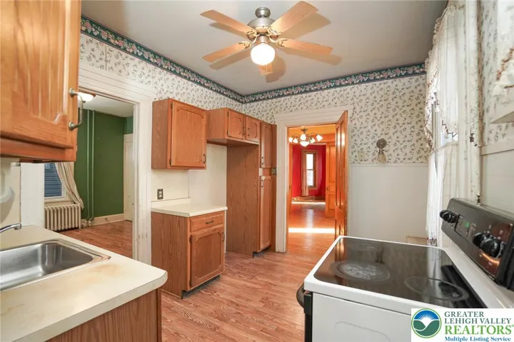 A rare opportunity to own one of Tamaqua’s beautiful Victorian homes in a lovely neighborhood as The Harlan House comes to the market. From the generous covered front porch to the Mansard Roof, the home offers an abundance of historic charm brimming with potential. A foyer opens to a stair hall to the upper level and a second foyer leading to the living room, pocket doors offer privacy from foyer and formal dining room. The dining room boasts a large walk-in closet with excellent pantry potential or to store table service! The home’s kitchen offers access to the side porch as well as a home office, full bath with lovely tile, and a family room. A second, rear staircase leads from the family room to the second floor. The second floor offers two bright bedrooms to the front with a spacious rear hall with further home office potential and a generous linen closet. A middle bedroom connects to another bedroom with porch access and attached sitting room. Completing this level is a second full bath. The home’s attic boasts a further two bedrooms and a spacious, unfinished/unheated storage space. The basement is divided into two spaces: utilities to the front and a heated laundry/storage room to the rear. The flat, fenced yard ends with a three-car detached garage with power. With a bit of elbow grease this home’s potential can be realized to show its historic charm and abundant space to their fullest. Bonus: Tamaqua District Grads qualify for the two-year LCCC Scholarship!