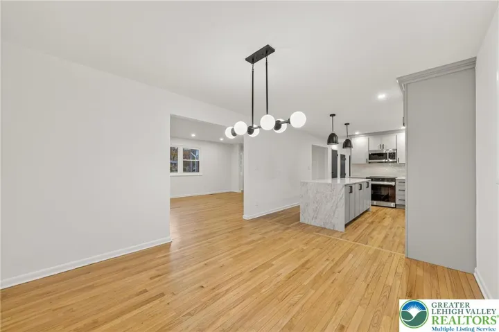 Stylish, fully remodeled home located in the desirable Stafore Estates of Hanover Township! This stunning property features hardwood flooring throughout, a bright open layout, and a designer kitchen with Taj Mahal countertops, a waterfall island, and stainless steel appliances. Relax in the spacious primary suite offering a large walk-in closet and a luxurious spa-like bathroom with a floating vanity, an eternity-lighted niche, and warm earthy tones. The other three bedrooms are also nicely sized, with one on the first floor that can be used as a home office. Equipped with two new Bosch heat pumps with separate zones for year-round comfort. Set in a great neighborhood, this home blends modern elegance with efficiency — truly move-in ready!